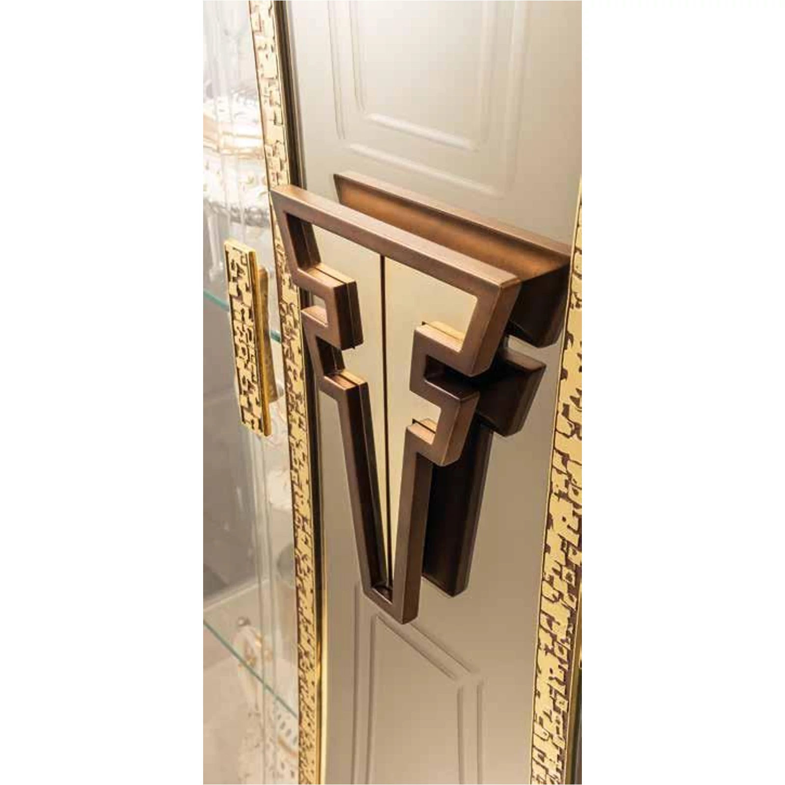 The excellent craftsmen of the manufacturer designed this set for a long time, so they could create the typical duality of this set: the rigidly straight shapes of the tables and mirrors are balanced by the curved shapes of the sideboards. The display cabinets deserve special attention because they provide as much light transmission as possible and to compensate their brightness they have a bronzed mirror backing.