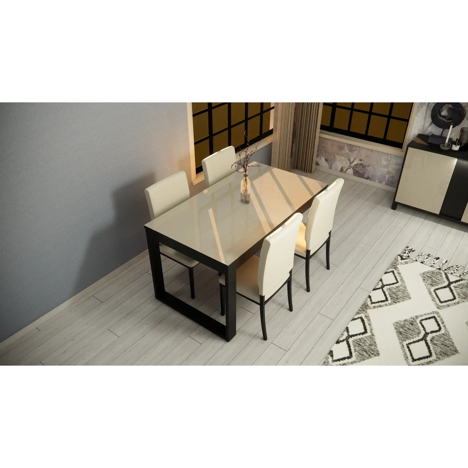 Beige-Dark Brown Dining Room Set with 160x90 cm Dining Table – LM Venus Day