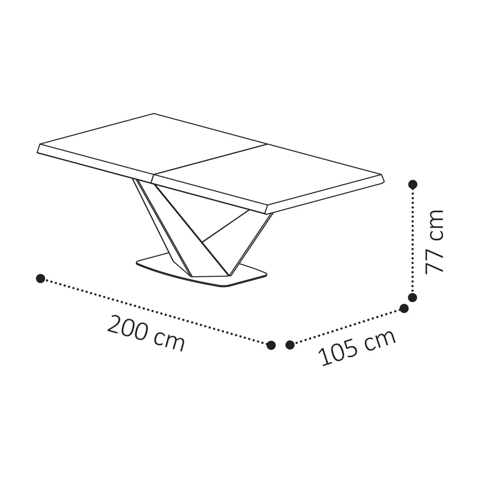 - 200x105 cm version: 200×105×77 cm