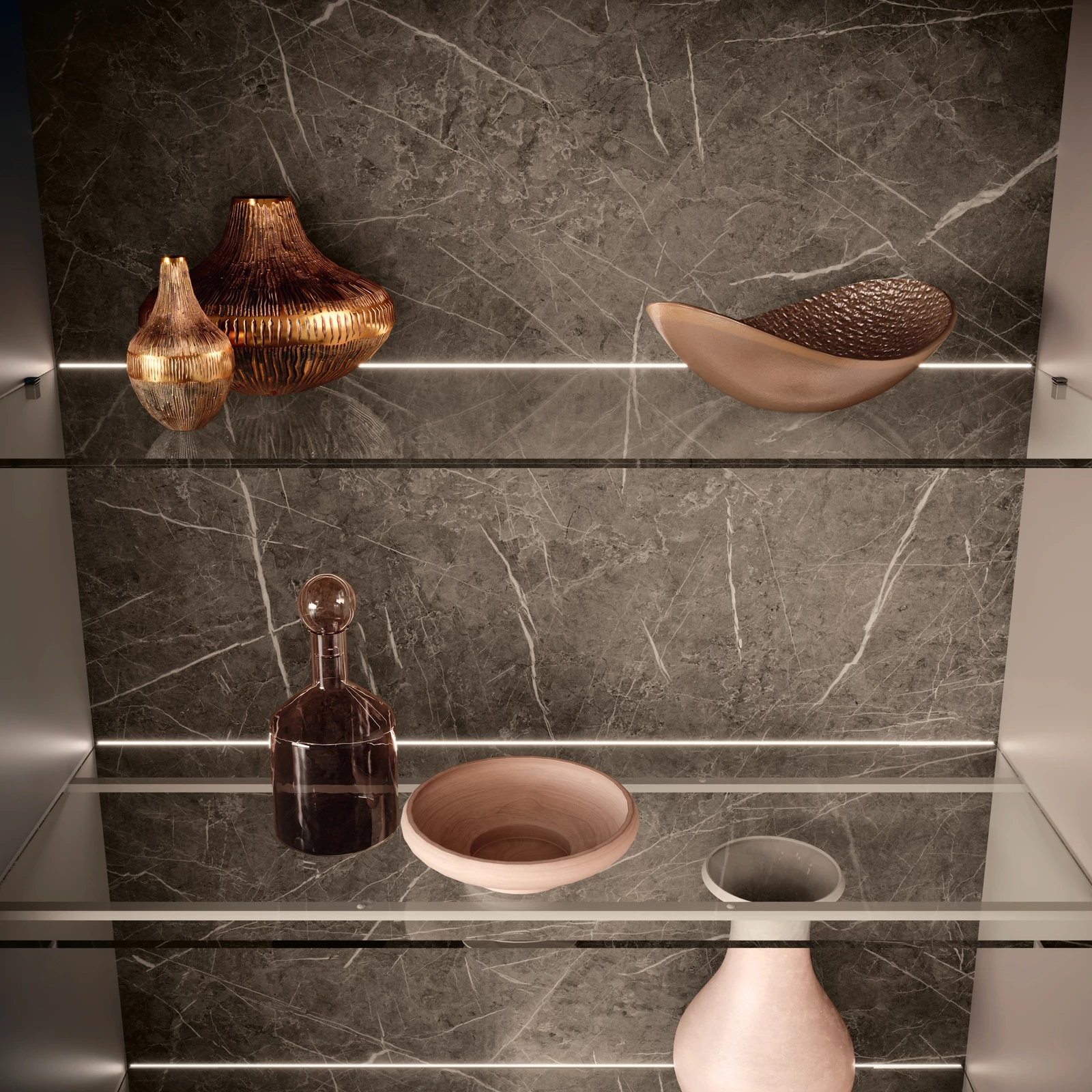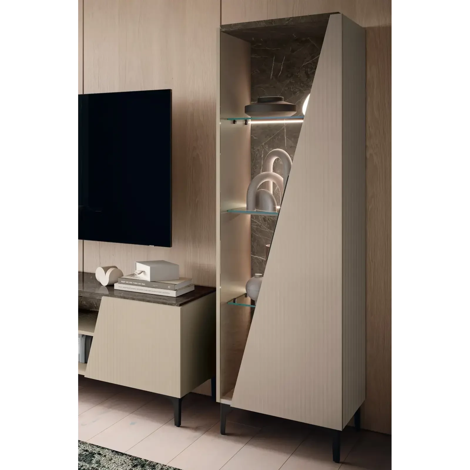 Beige-Marble Display Cabinet with LED Light, 1-Door, Left-Opening – CA Fidia Day