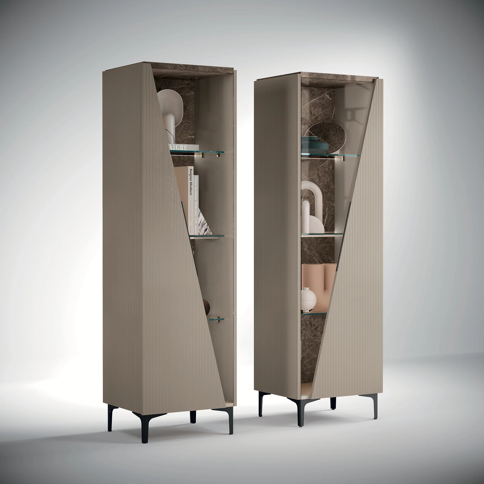 Beige-Marble Display Cabinet with LED Light, 1-Door, Right-Opening – CA Fidia Day