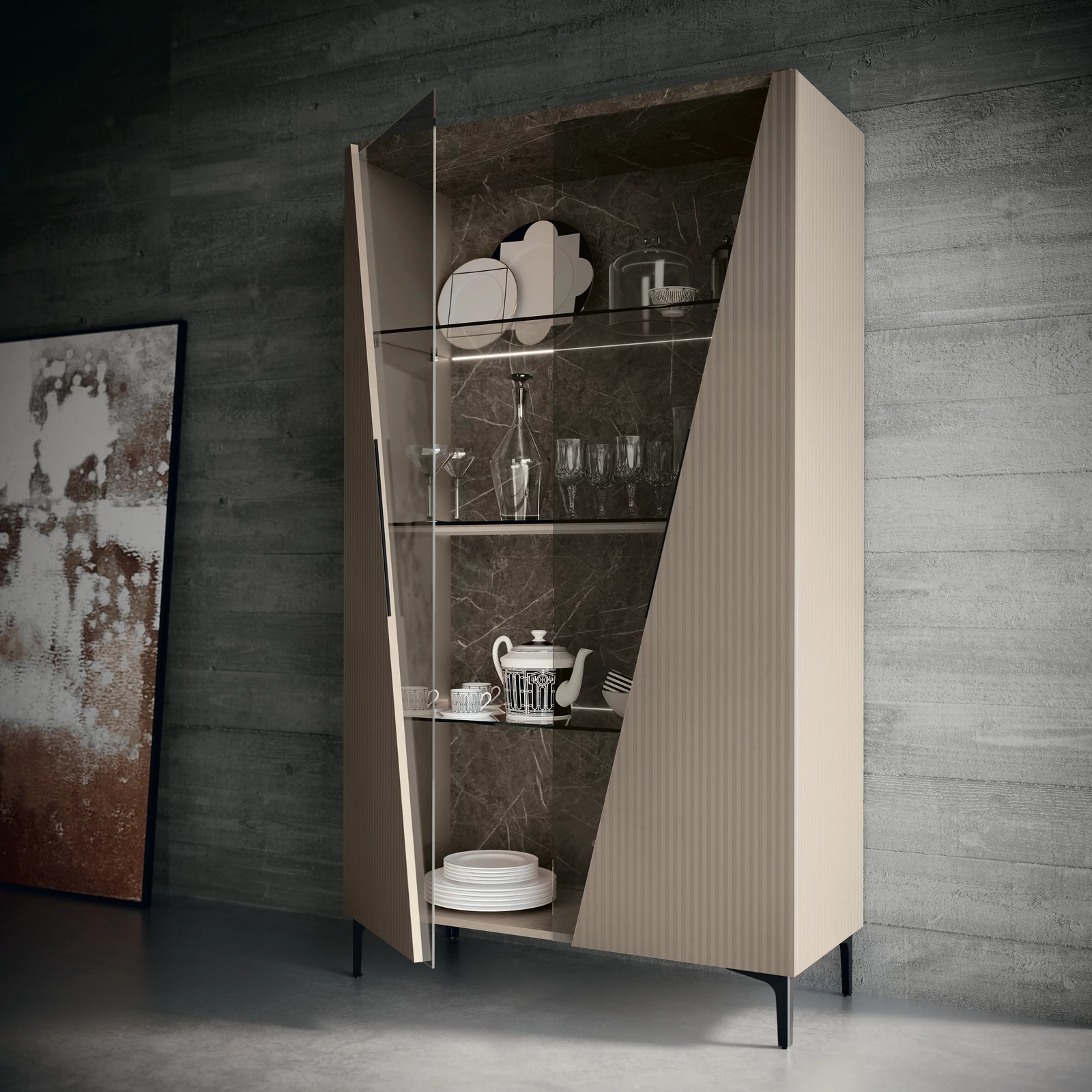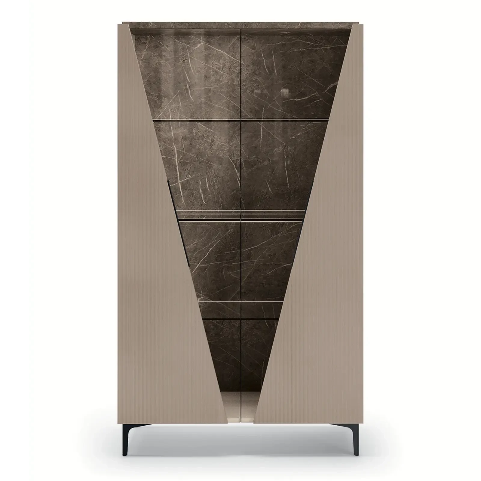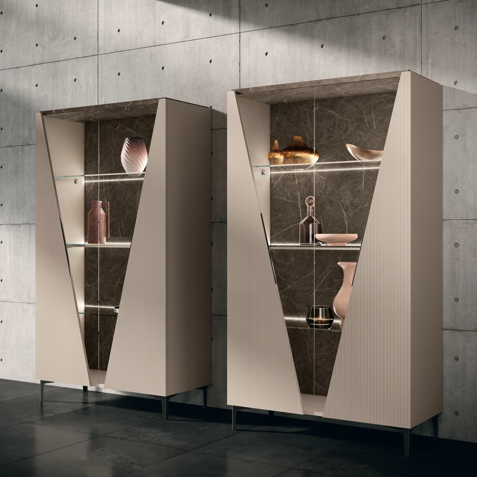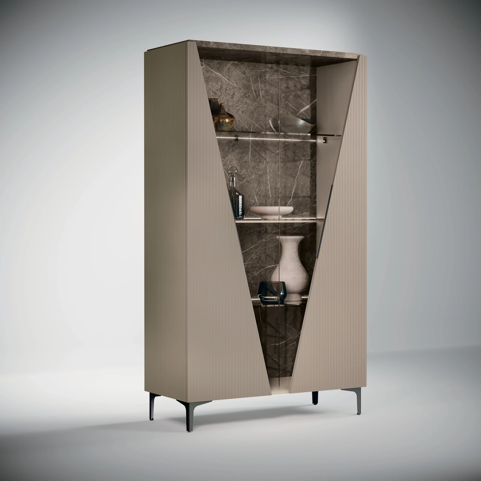 CA Fidia Day Modern Beige-Marble Display Cabinet with LED Light, 2-Doors
