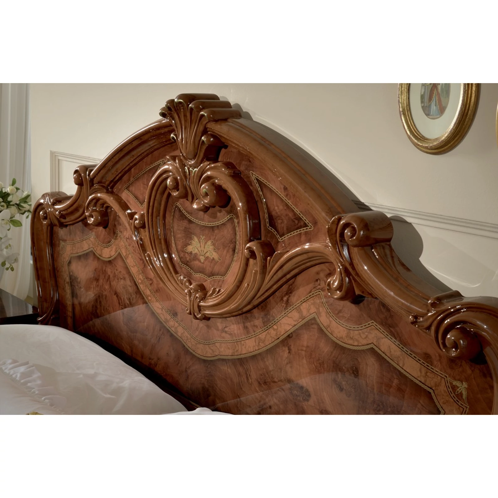In addition to the large-scale shapes, combining the wood patterns and the typical decorative patterns of the collection, this bedroom also reveals a kind of vibrancy. Perfect for those who like to admire the richness of decorations.