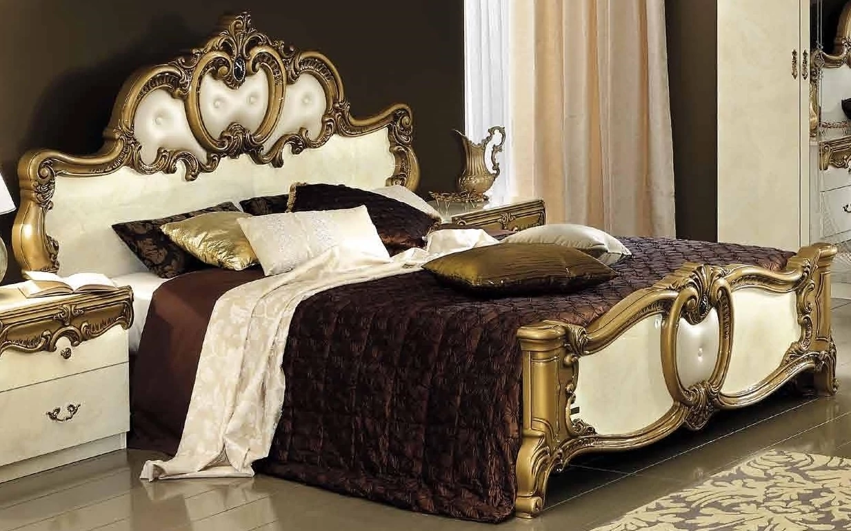 Barocco Double bedstead - beige, with gold decoration