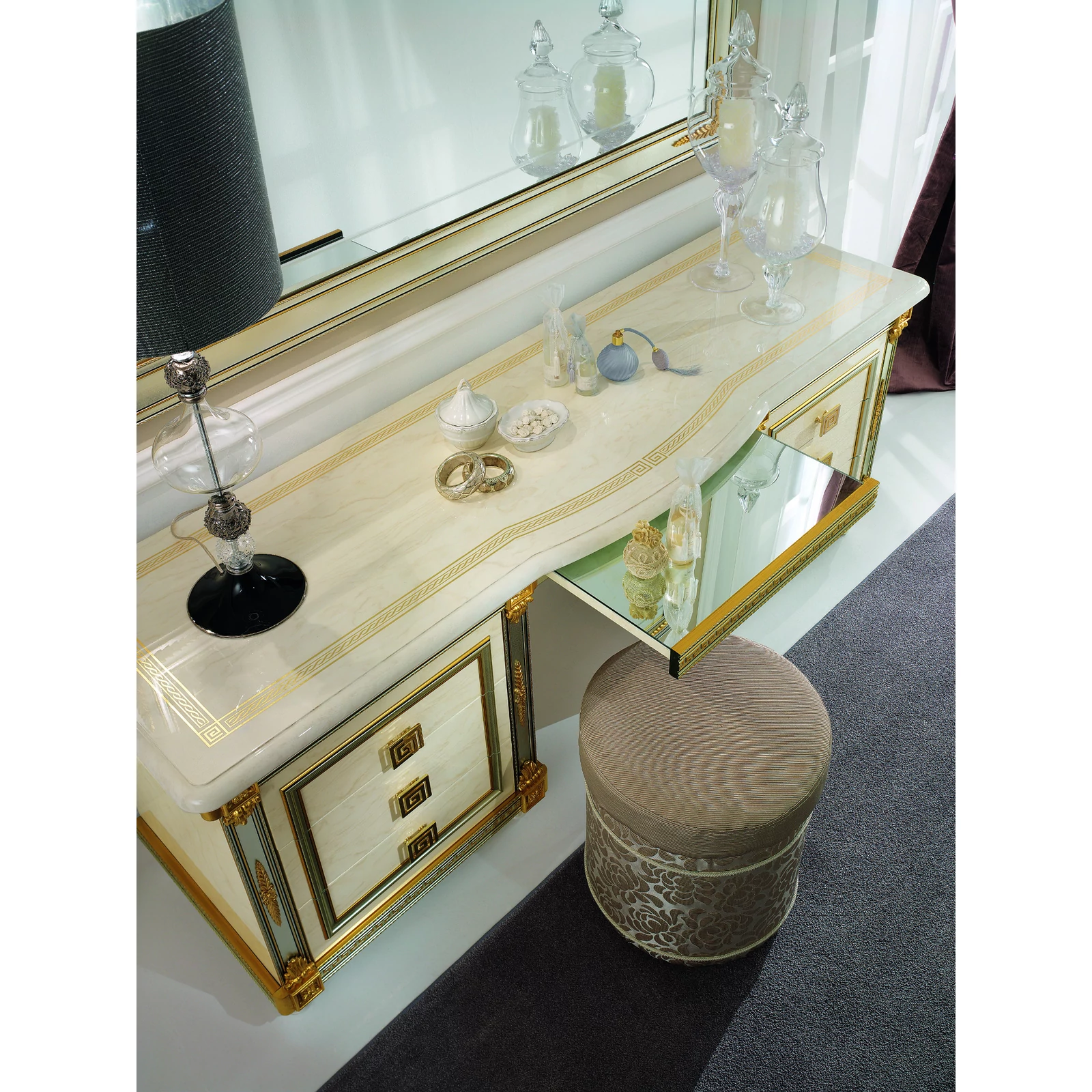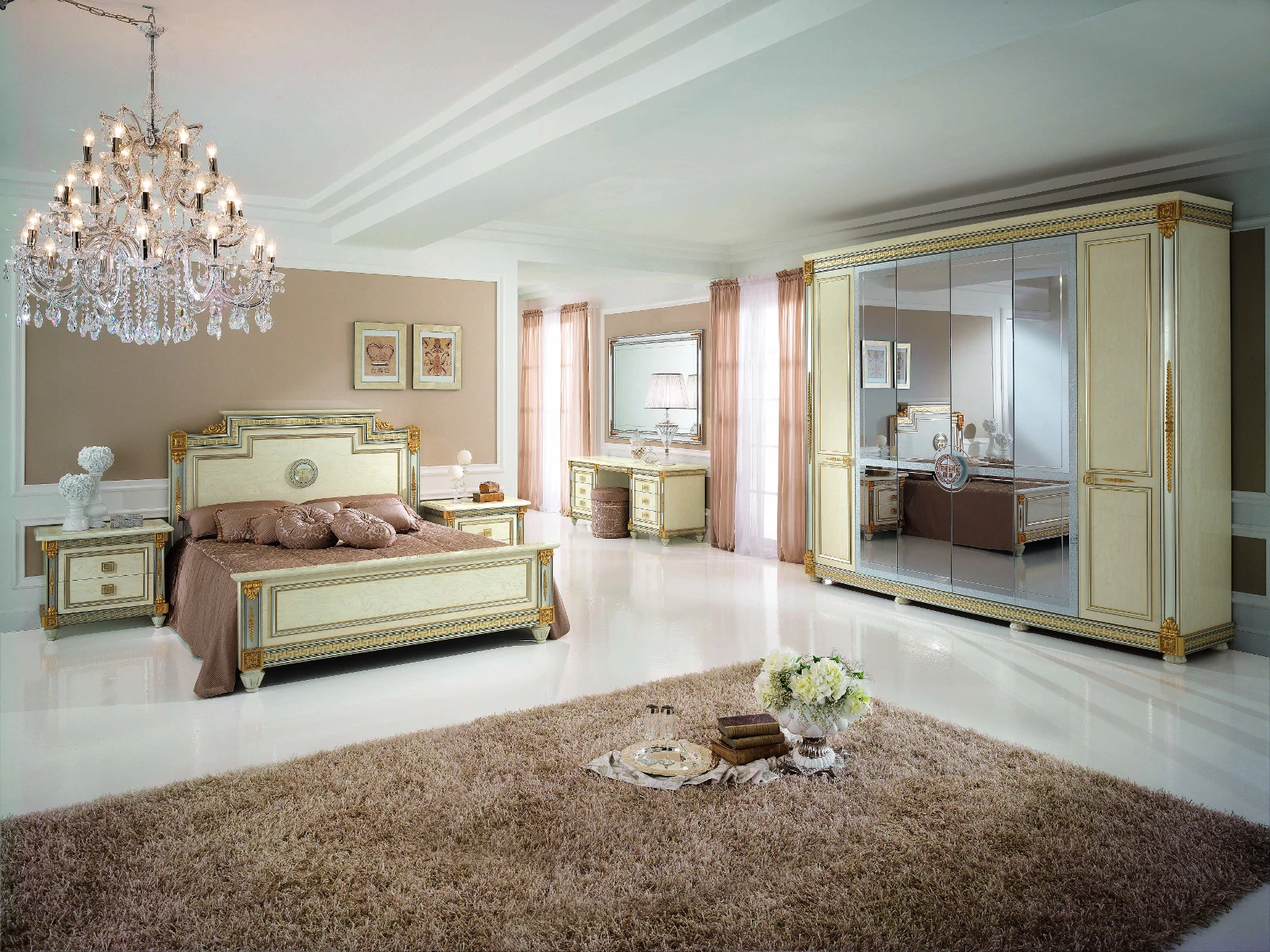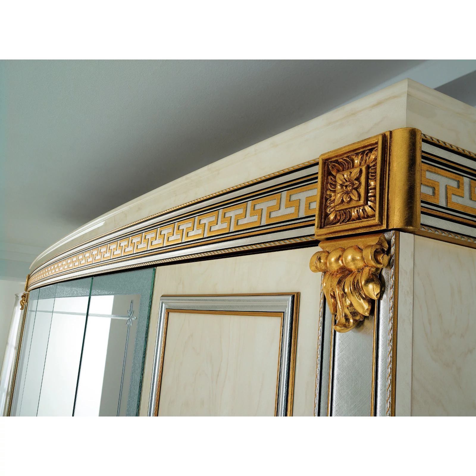 ArredoClassic's Liberty collection brings light, clarity and elegance to your home, constantly amazing both its users and guests. Its beautiful cream-colored marbled surfaces are completed with harmony by silver details that gold floral patterns make more unique. Every piece of the model series makes your home a luxury place, at which every minute spent delights. Choose the set that fits you the most, and you will have a work of art! Bedrooms, living rooms, dining rooms and also seating furniture are available in the Liberty searies, check them all!