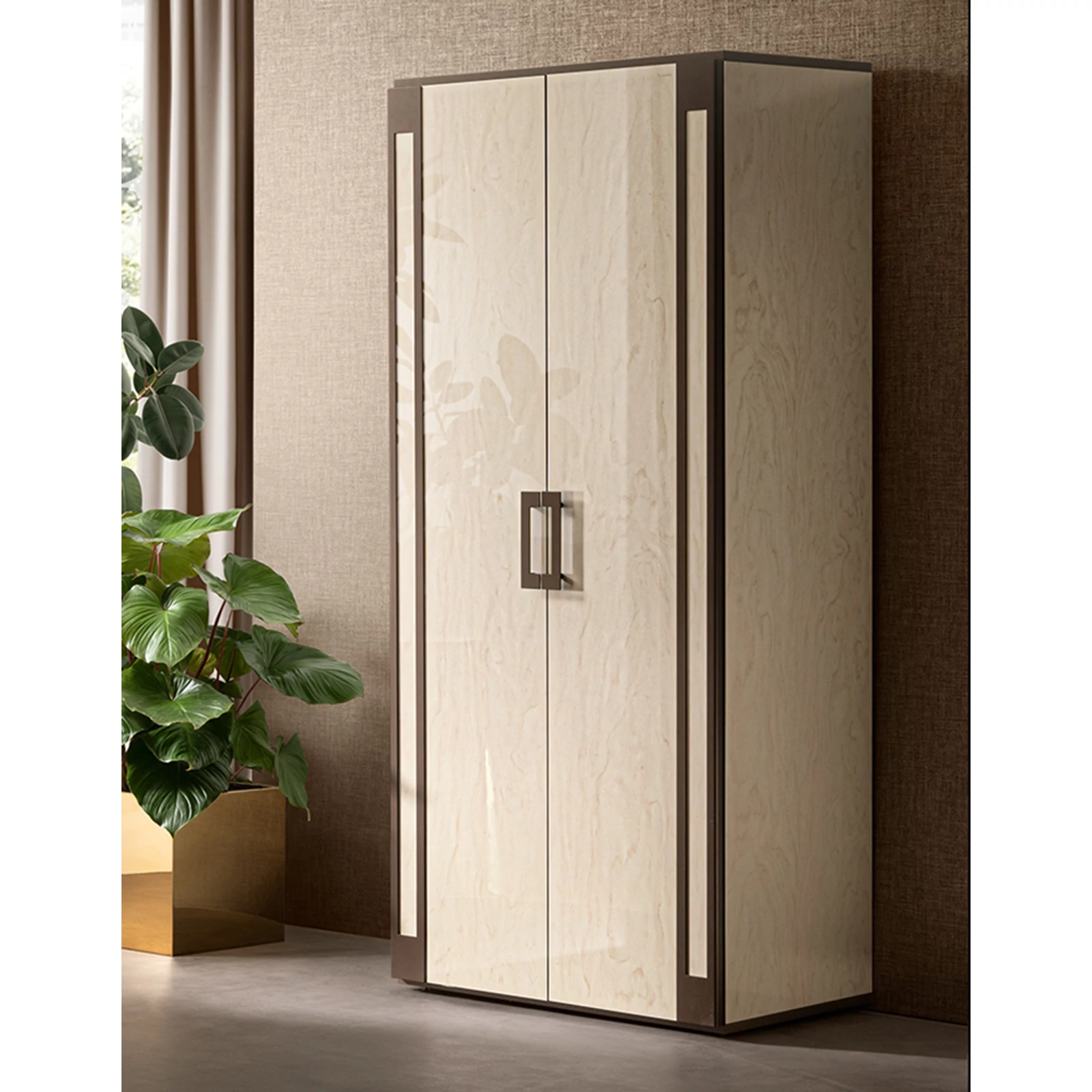 Poesia bears the signature of the Adora brand and is composed of complements designed to furnish the living room, dining room and bedroom. A refined collection in which every piece of furniture is a metaphor for Made-in-Italy beauty and elegance. Minimalist details meet sophisticated materials in a fusion of refined character. With Poesia, contemporary style acquires a new image, thanks to its attractive geometries, special finishes and contrasting materials. Emperador Dark effect screen-printed glass tops, doors in glossy beige marble finish with slight color variations, and metal handles in warm bronze shades are precious details that enrich each element and constitute the leitmotif of the entire collection. The square shapes of the furniture and seats appear linear and graceful, providing a play of volumes and softness that integrate comfort, aesthetics and functionality. Linearity, essentiality and a touch of boldness are Poesia’s stylistic hallmarks. This is where the true poetry of this collection lies: in its ability to convey the value of Italian furniture, by creating cozy and comfortable furnishing scenarios.