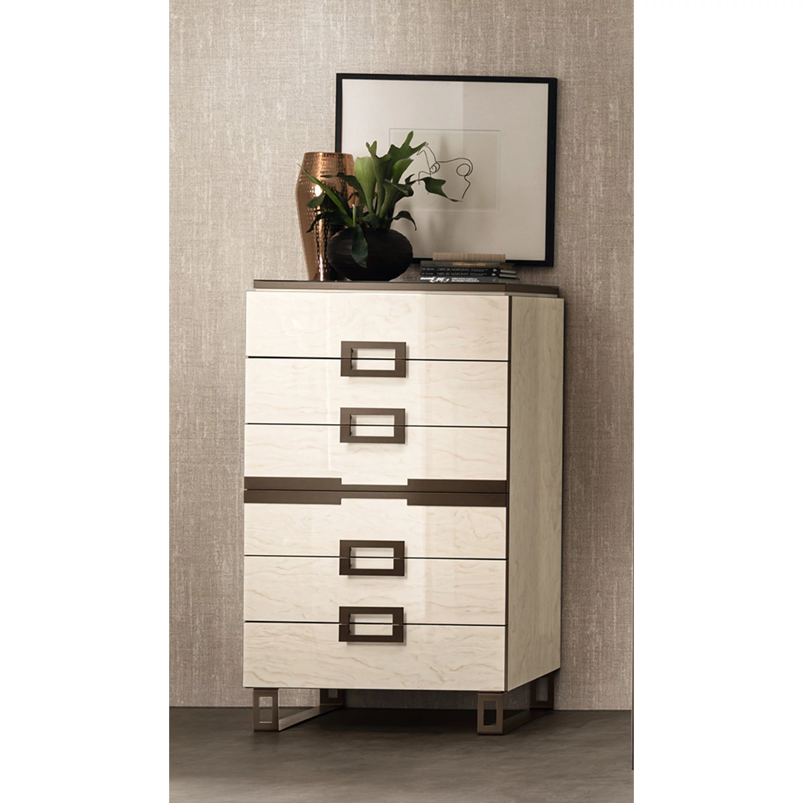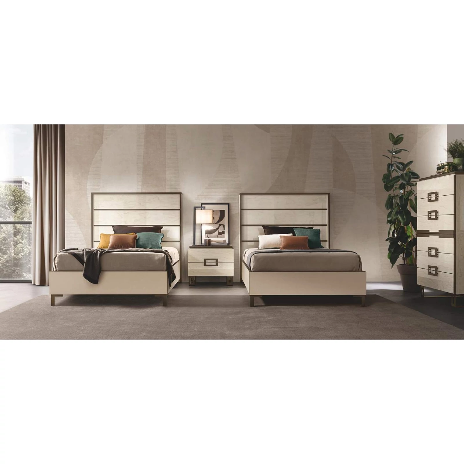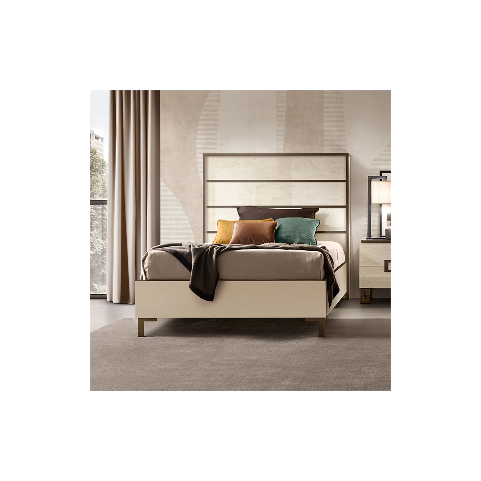 Poesia bears the signature of the Adora brand and is composed of complements designed to furnish the living room, dining room and bedroom. A refined collection in which every piece of furniture is a metaphor for Made-in-Italy beauty and elegance. Minimalist details meet sophisticated materials in a fusion of refined character. With Poesia, contemporary style acquires a new image, thanks to its attractive geometries, special finishes and contrasting materials. Emperador Dark effect screen-printed glass tops, doors in glossy beige marble finish with slight color variations, and metal handles in warm bronze shades are precious details that enrich each element and constitute the leitmotif of the entire collection. The square shapes of the furniture and seats appear linear and graceful, providing a play of volumes and softness that integrate comfort, aesthetics and functionality. Linearity, essentiality and a touch of boldness are Poesia’s stylistic hallmarks. This is where the true poetry of this collection lies: in its ability to convey the value of Italian furniture, by creating cozy and comfortable furnishing scenarios.