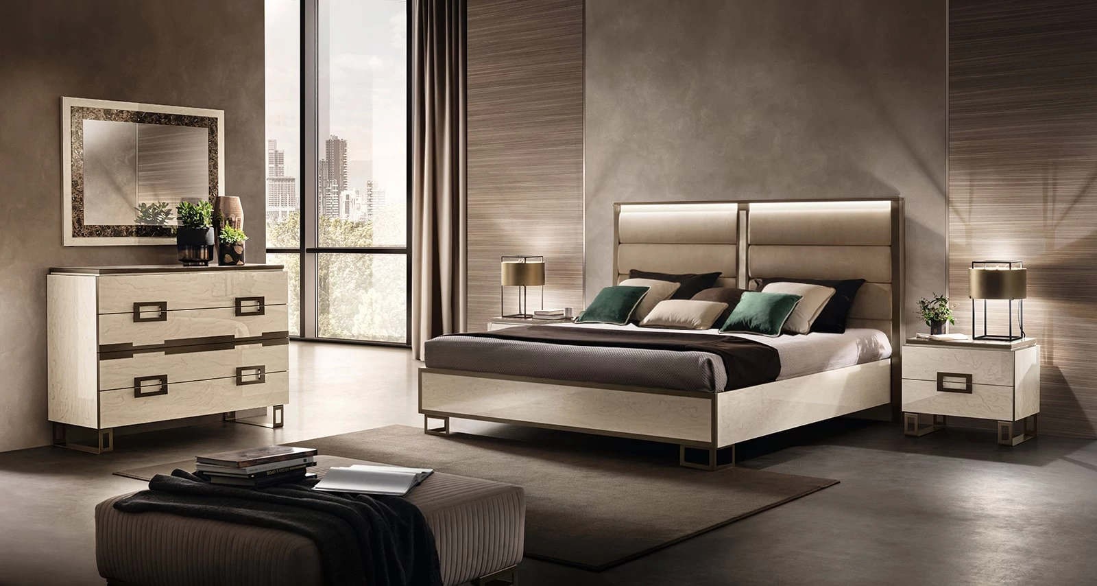 AC Poesia bedroom - with marble effect tops, with 180x200 cm bed, 6-doors cabinet