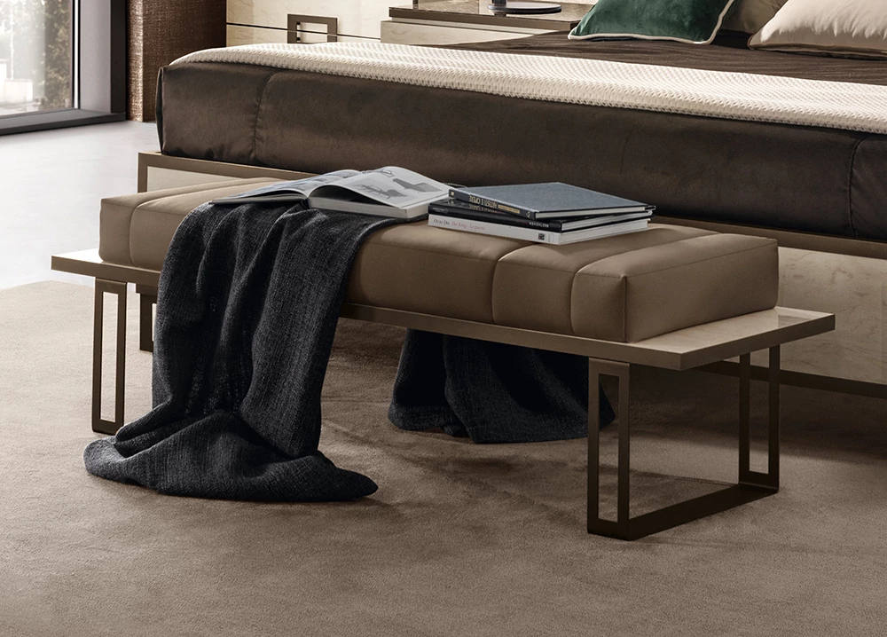 Poesia bears the signature of the Adora brand and is composed of complements designed to furnish the living room, dining room and bedroom. A refined collection in which every piece of furniture is a metaphor for Made-in-Italy beauty and elegance. Minimalist details meet sophisticated materials in a fusion of refined character. With Poesia, contemporary style acquires a new image, thanks to its attractive geometries, special finishes and contrasting materials. Emperador Dark effect screen-printed glass tops, doors in glossy beige marble finish with slight color variations, and metal handles in warm bronze shades are precious details that enrich each element and constitute the leitmotif of the entire collection. The square shapes of the furniture and seats appear linear and graceful, providing a play of volumes and softness that integrate comfort, aesthetics and functionality. Linearity, essentiality and a touch of boldness are Poesia’s stylistic hallmarks. This is where the true poetry of this collection lies: in its ability to convey the value of Italian furniture, by creating cozy and comfortable furnishing scenarios.