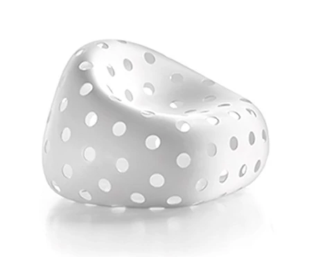 The armchair deriving from the "Gumball" family has great impact and are suitable for rooms that require solutions with great character. The openings on the surface give unrivalled lightness for this kind of furniture. It can be equipped with an RGB lighting kit to create a stunning colour-changing display. The openings on the opaque fabric seat create spectacular light effects, thanks to the source inside.