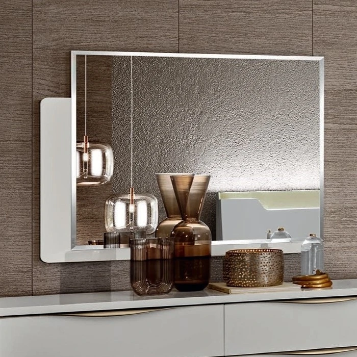 The Kharma mirror features a sleek, high-gloss frame in modern Italian style, making it a perfect accent piece for any contemporary bedroom. Paired with the collection’s elegant furnishings, this mirror adds depth and brightness, creating a spacious and luxurious feel in your room.