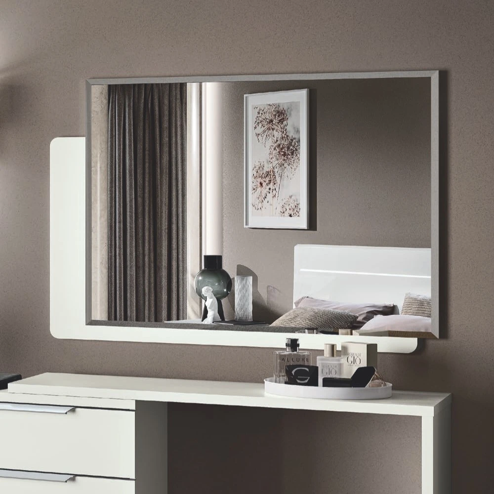 The Kimera bedroom is an elegant and modern collection of CamelGroup, featuring glossy white surfaces, brushed aluminum details, and trapezoidal handles. The special, unique atmosphere is enhanced by the LED lighting (4000 K) on the headboard. The innovative, dust-free design of the bed base prevents dust accumulation under the bed, ensuring a cleaner and more hygienic sleeping environment. The tops of the dressers and nightstands are 30 mm thick, and the interior of the drawers is lined with scratch-resistant material. All drawers close softly and quietly, which not only adds aesthetic value but also ensures long-lasting durability.