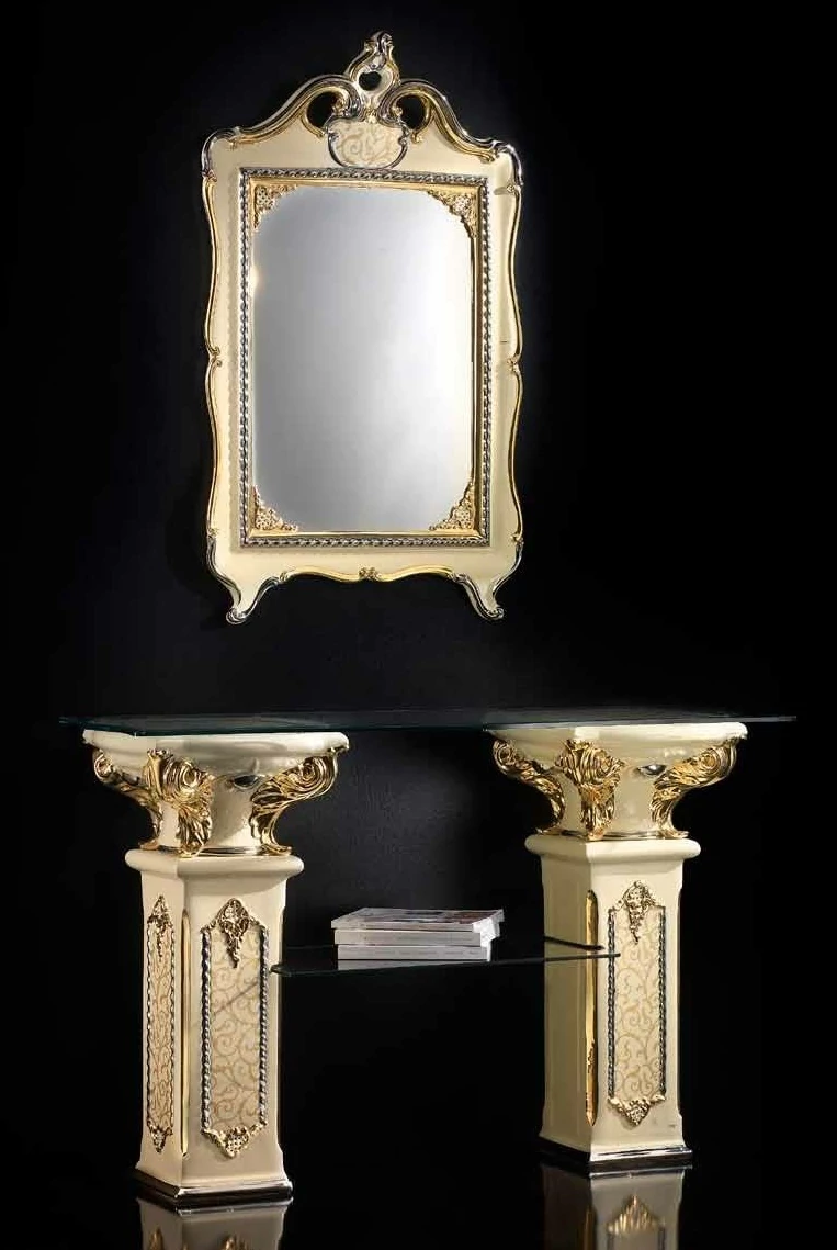 Ceramic console with two columns, with 2 glasses, with mirror (746). Color: cream color, gold, platinum