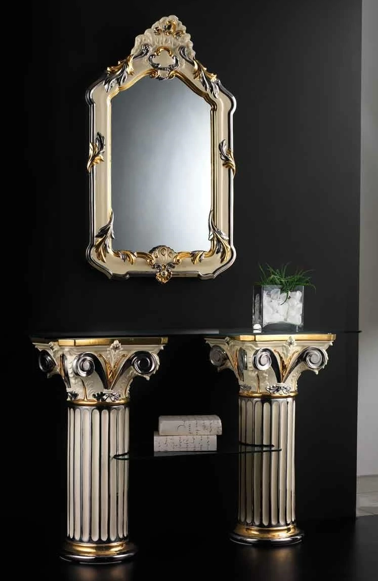 Ceramic console, with mirror (633). Color: cream color, gold, platinum