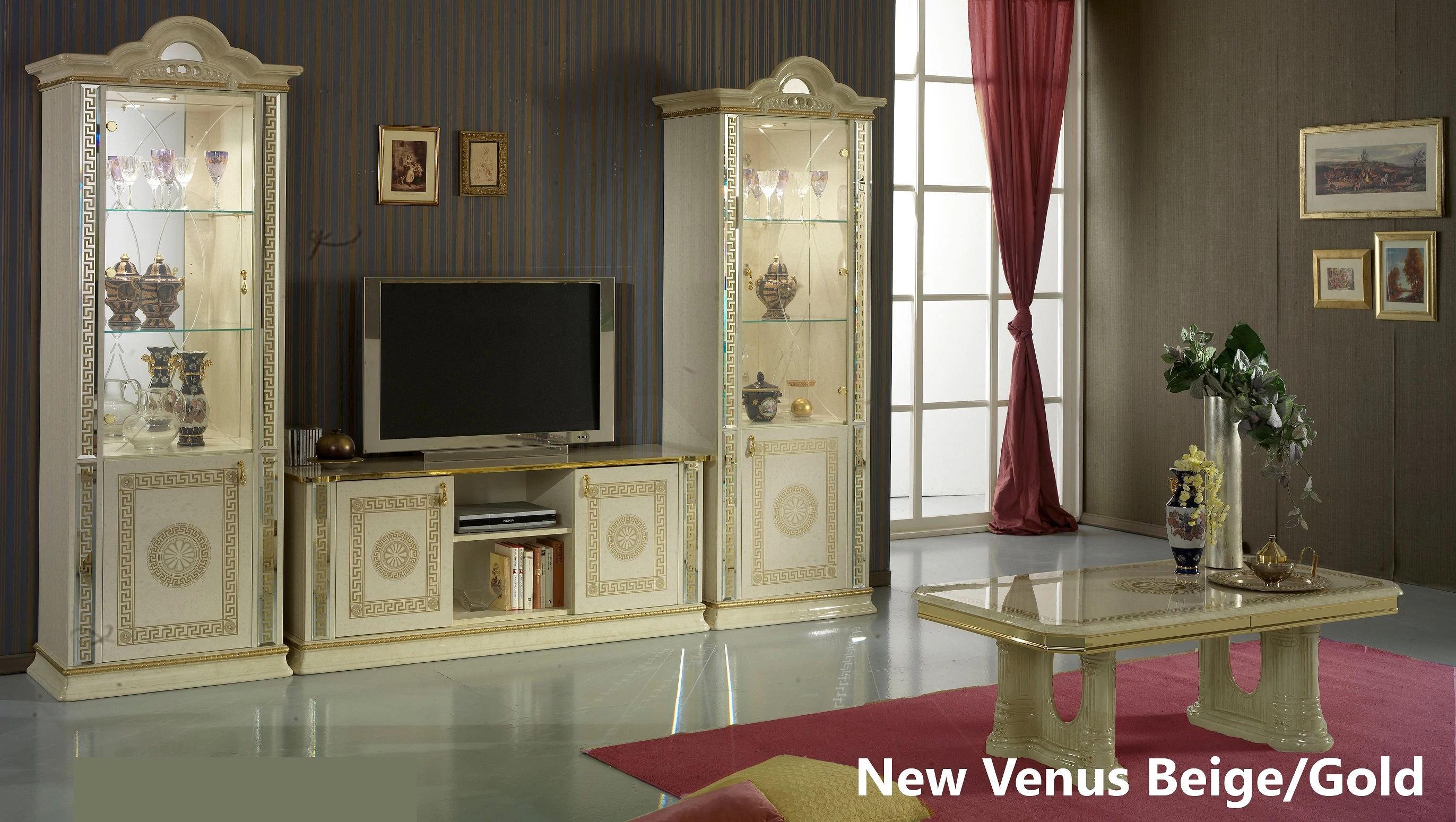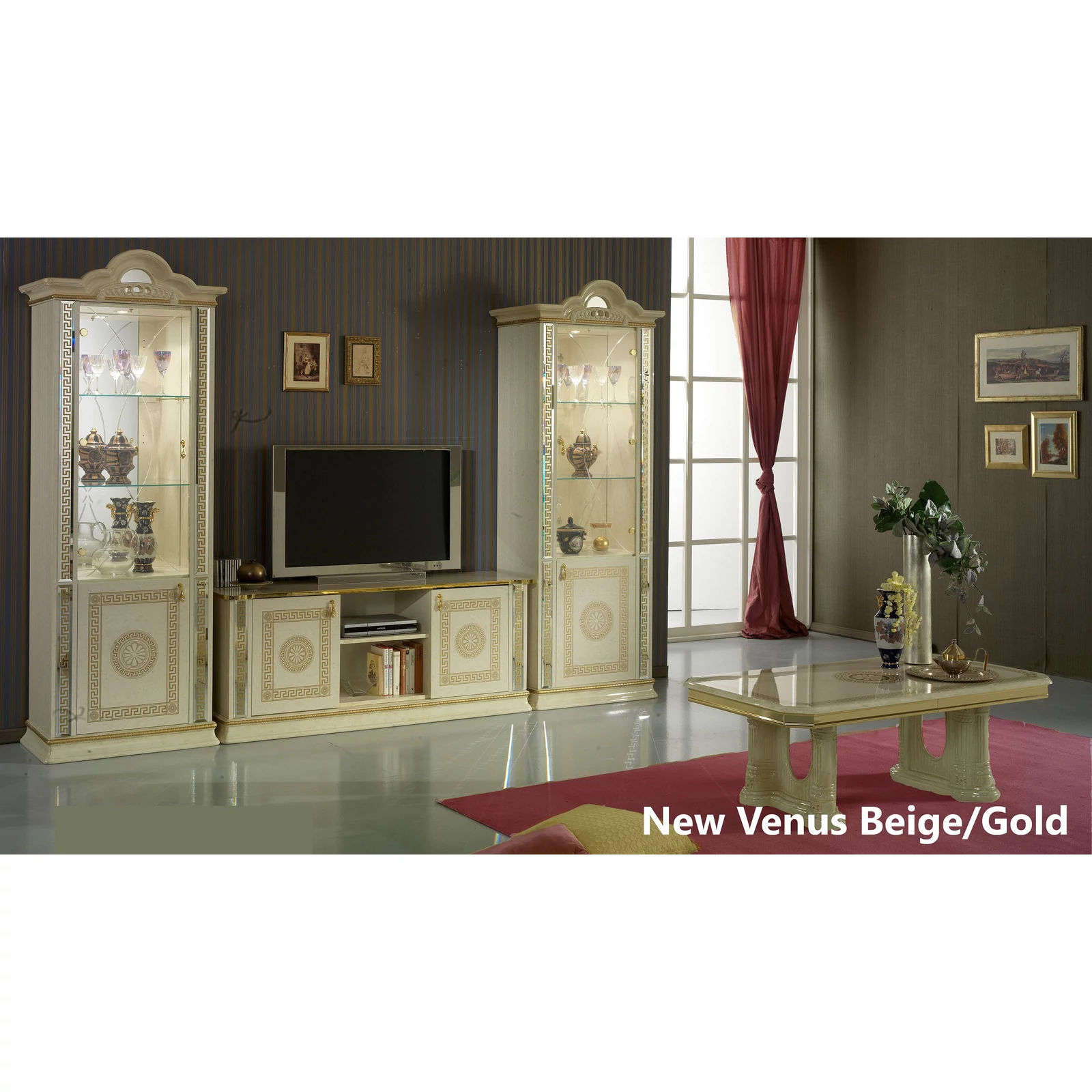 BC-VED-VT1-011-door display cabinet - beigeBC-VED-PTV-01TV commode - beigeBC-VED-TAV-07Coffee table - beige
