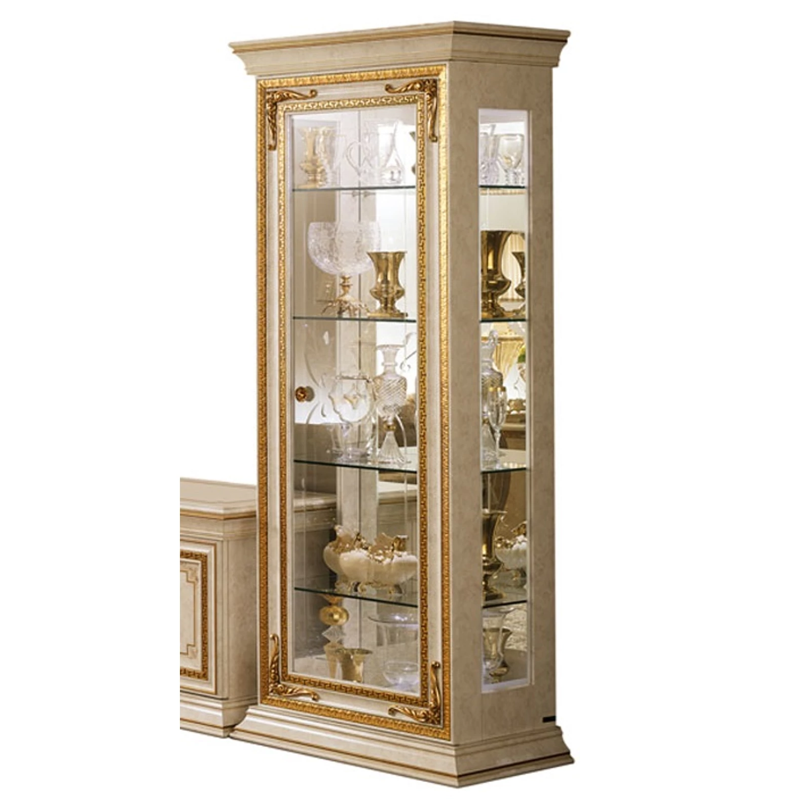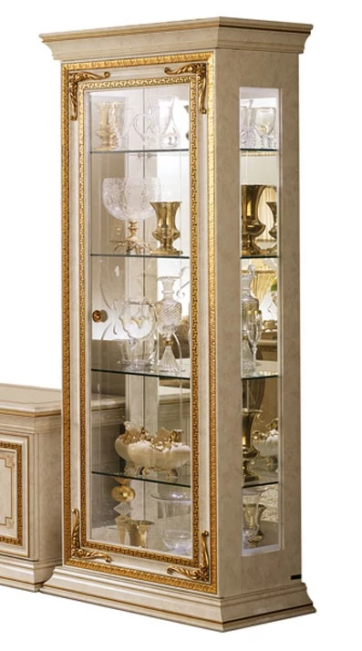 In every element of the Leonardo Italian dining room and living room set, you can observe the light flowing into the room shining on the beautifully decorated, gold-colored surfaces. Large surfaces reflecting the glitter of marble are broken only by these masterful decorations. The excellent craftsmen of ArredoClassic factory created a piece of art of which feeling of luxury you can enjoy together with your family and friends. Your showcases and mirrors can be supplemented with an extra gold-colored, antique with crown - choose the set you need and decorate your rooms with it!