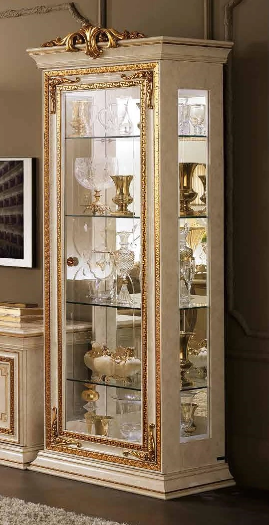 In every element of the Leonardo Italian dining room and living room set, you can observe the light flowing into the room shining on the beautifully decorated, gold-colored surfaces. Large surfaces reflecting the glitter of marble are broken only by these masterful decorations. The excellent craftsmen of ArredoClassic factory created a piece of art of which feeling of luxury you can enjoy together with your family and friends. Your showcases and mirrors can be supplemented with an extra gold-colored, antique with crown - choose the set you need and decorate your rooms with it!