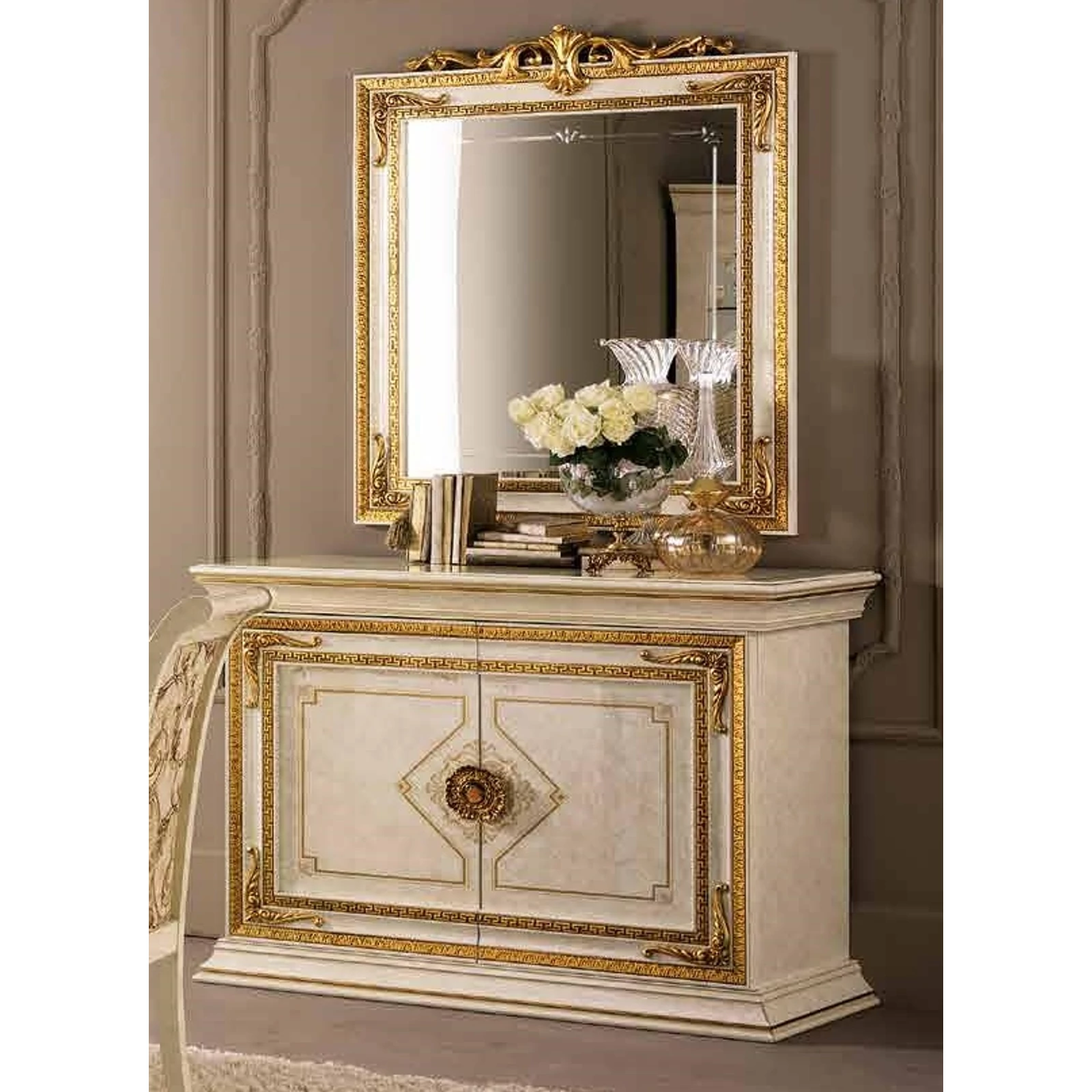 In every element of the Leonardo Italian dining room and living room set, you can observe the light flowing into the room shining on the beautifully decorated, gold-colored surfaces. Large surfaces reflecting the glitter of marble are broken only by these masterful decorations. The excellent craftsmen of ArredoClassic factory created a piece of art of which feeling of luxury you can enjoy together with your family and friends. Your showcases and mirrors can be supplemented with an extra gold-colored, antique with crown - choose the set you need and decorate your rooms with it!