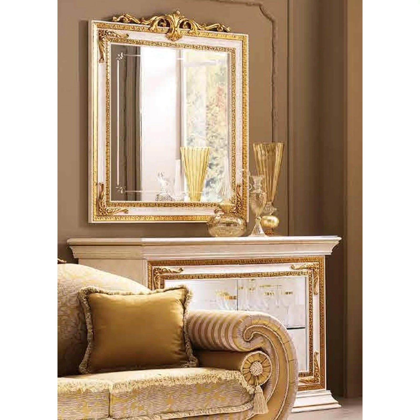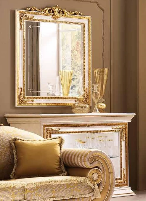 In every element of the Leonardo Italian dining room and living room set, you can observe the light flowing into the room shining on the beautifully decorated, gold-colored surfaces. Large surfaces reflecting the glitter of marble are broken only by these masterful decorations. The excellent craftsmen of ArredoClassic factory created a piece of art of which feeling of luxury you can enjoy together with your family and friends. Your showcases and mirrors can be supplemented with an extra gold-colored, antique with crown - choose the set you need and decorate your rooms with it!