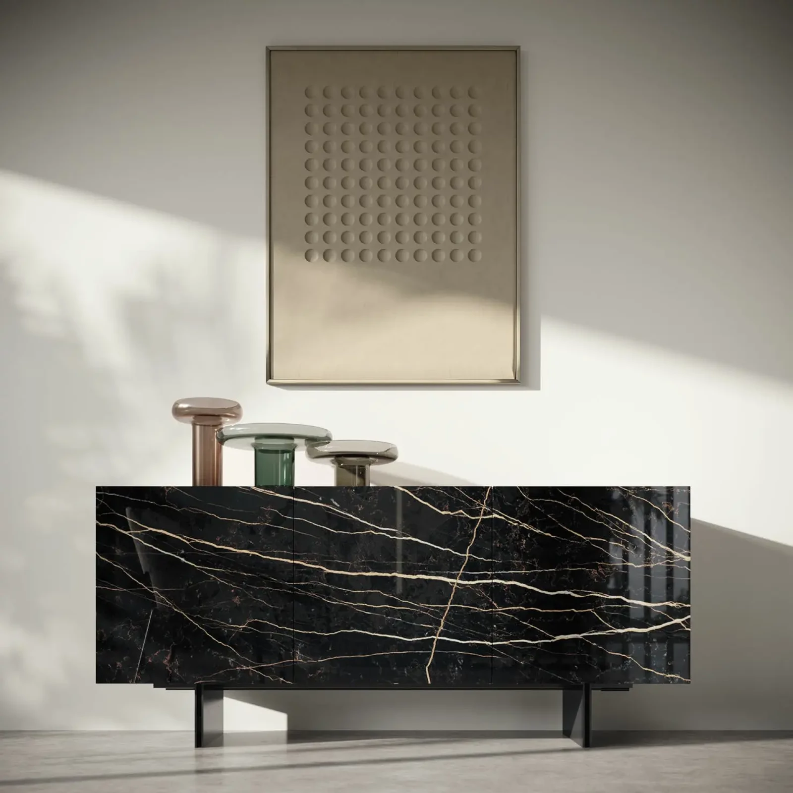 • Beige-Anthracite Buffet Chest with Thunder Night Ceramic Doors, 3-Doors – CA Zenith Day: 1787mm x 510mm x 794mm