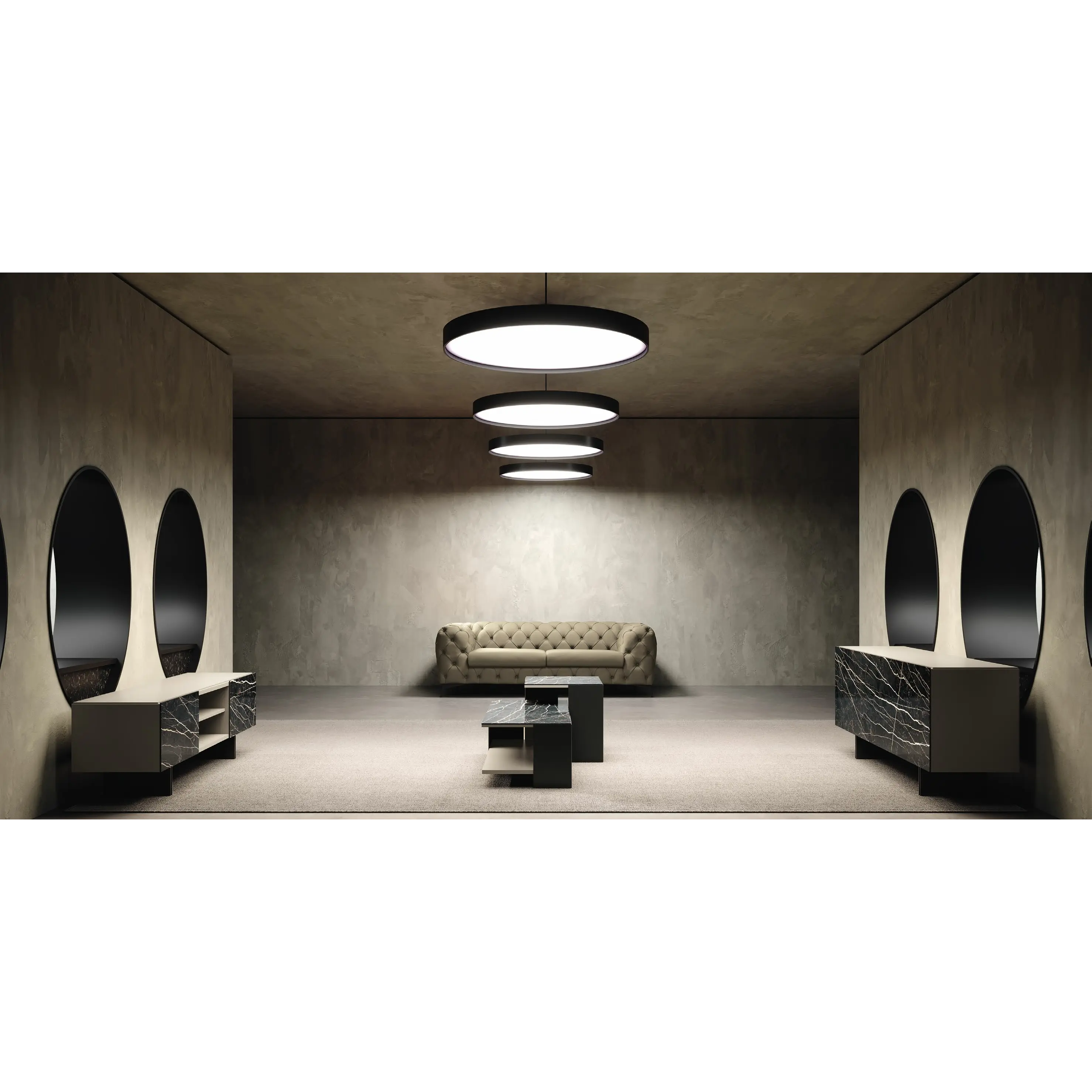 Beige-Anthracite Living Room with Thunder Night Ceramic Panels – CA Zenith Day