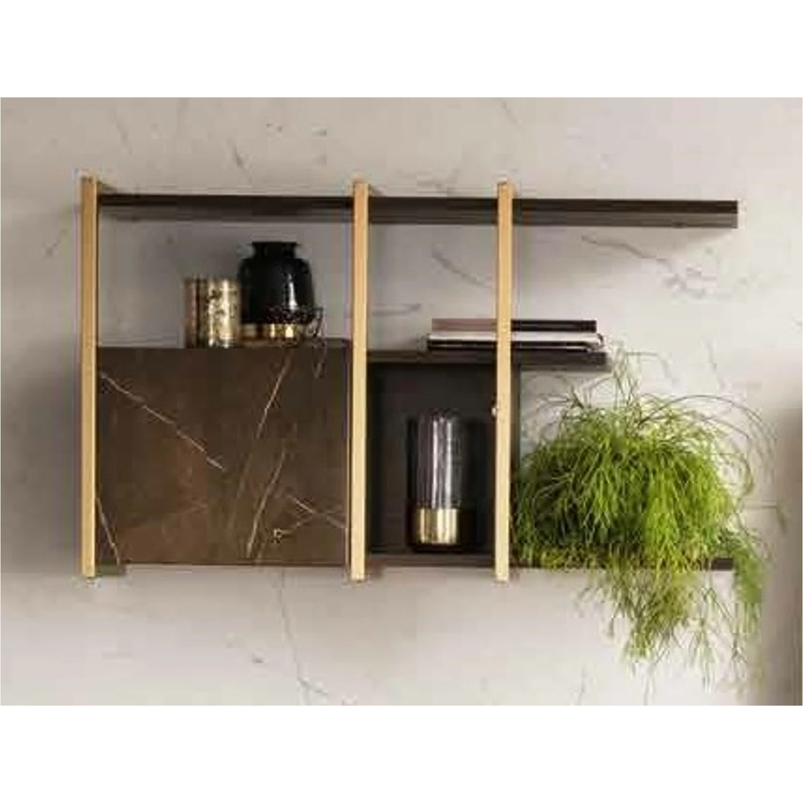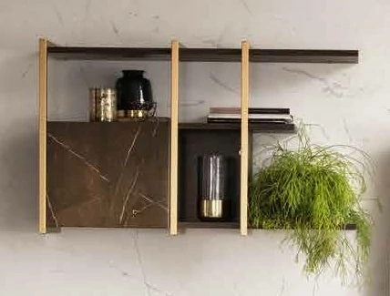 Essenza is the new Collection of the brand Adora, that includes furnishing elements for your living room, dining room and bedroom. This collection embodies contemporary elegance in small details that define the research for aesthetics, accomplished to create every piece of furniture. The concept is inspired by the classic / contemporary dualism, and by the contrasting textures of two precious finishes, embellished by elegant golden details. The contrast between the dark hues of wenge wood and the shining marble finish, with its typical bronze veins, is the leitmotiv behind this collection. The complete collection is enhanced by the satin-finish golden elements used for the metal handles of the nightstands, the frames of the display cabinets, dining room tables and living area furniture.