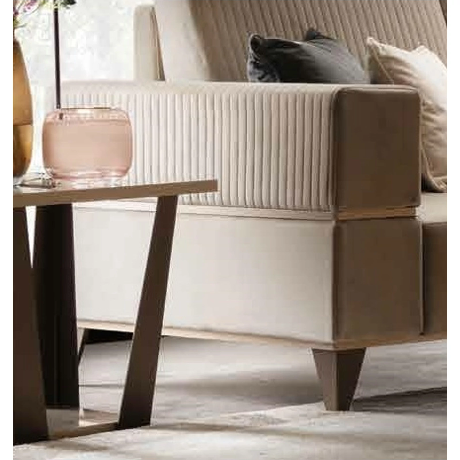 Ambra is the new Collection of the brand Adora, that includes furnishing elements for your living room, dining room and bedroom. Once again, Adora has left its unmistakable hallmark on furniture items that fly the flag for the prestige of Italian style and for the Italian flair for furniture with elegance and an inimitable contemporary flavour. The contrasting textures and the dissimilar volume effects between the different surfaces are sophisticated details that do not remain unnoticed and give character to each single furniture element. The structure of the furniture items in elm-wood finish forms an elegant contrast with the textured, open-pored doors, which are overlaid with marble-finish panels. Furnishing solutions with stylish, elegant silhouettes repeat the same contrasting effect that is enhanced by the satin-finish bronze profiles of the handles and feet. Another feature worth noting is the balance of delicate shades that add their own touch of elegance to each piece, with bright reflections from mirrored glass that, like a jewel, give luminosity to the whole furniture composition.