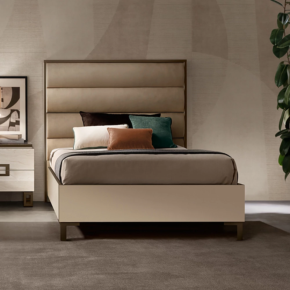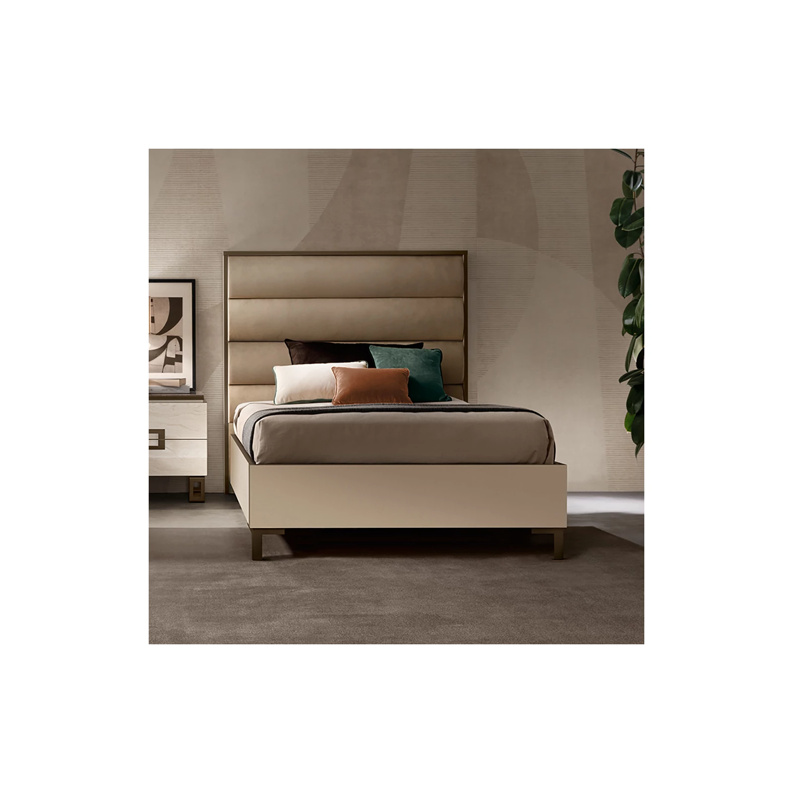 AC Poesia Single bedstead with bedding container with upholstered headboard with Cat. Extra fabric