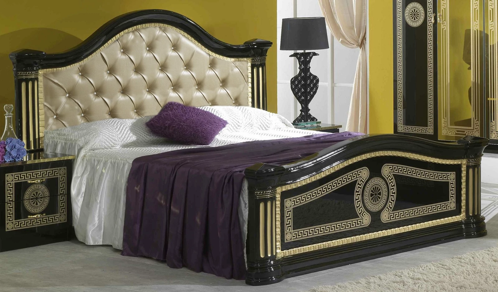 BC Serena Double bedstead with capitonné padded headboard - 180 cm, black-gold