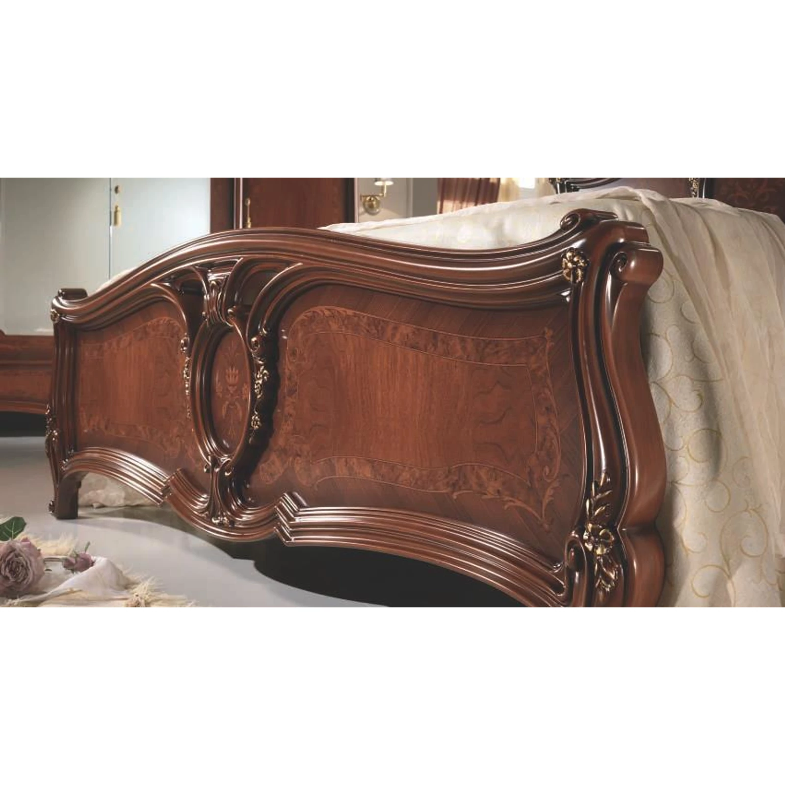 There is something extraordinary about the beauty of this complete bedroom, which is inspired clearly by classic style. All of its details reveal a new treasure. The pieces of furniture are in harmony and they complete each other.