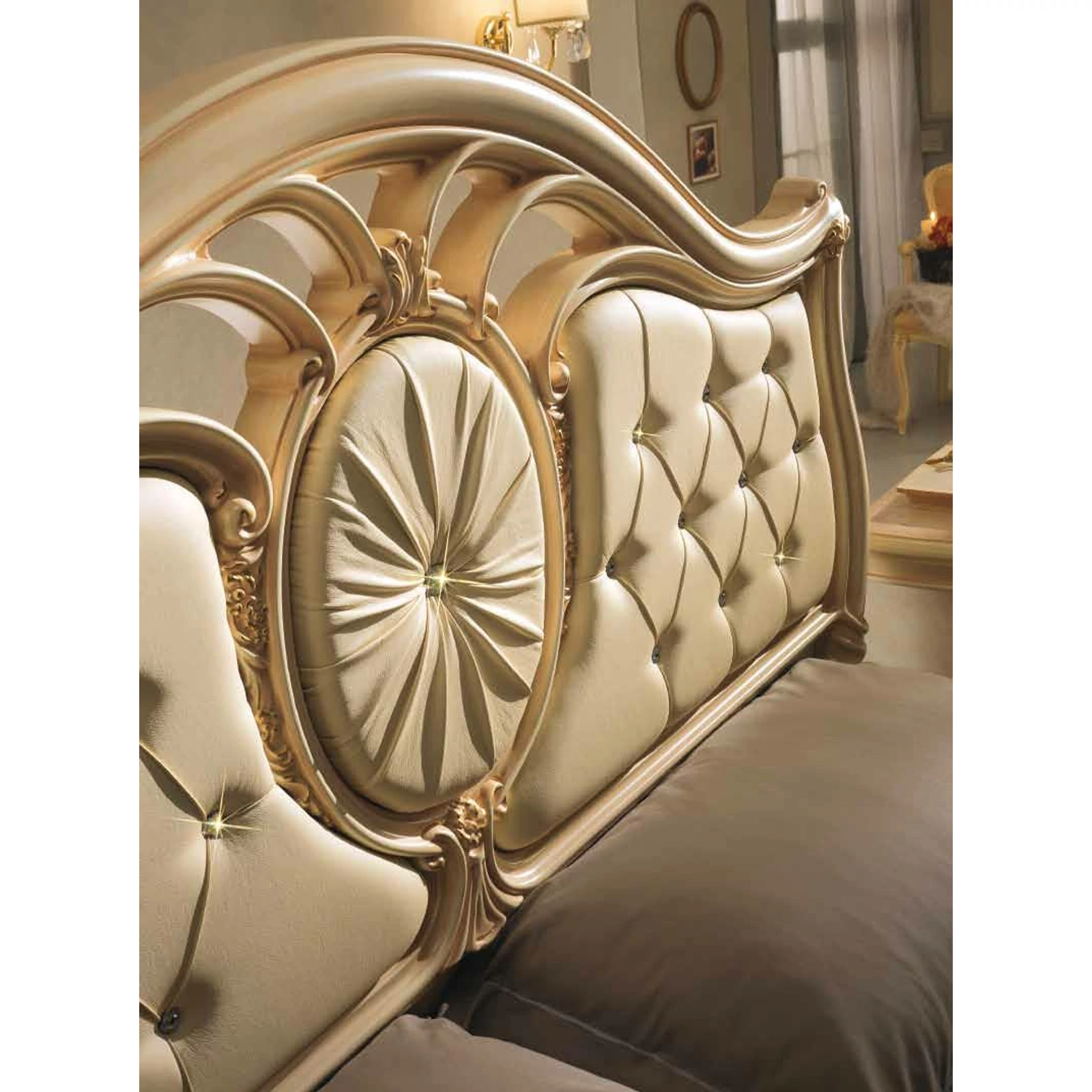 The inlays decorate the pieces of bedroom furniture elegantly with all of their tones. The stitching of the bed with padded headboard is decorated with crystals. In the collections of Saltarelli Mobili all details are well elaborate.