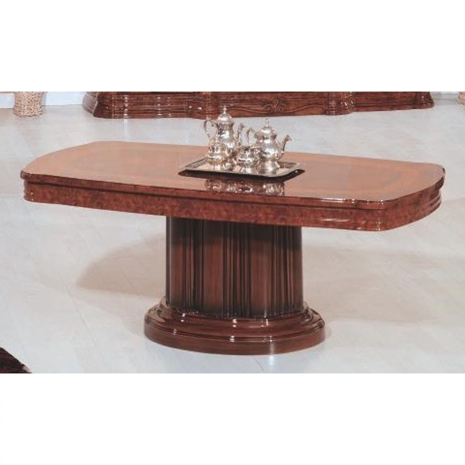 In this Italian style living room there are a lot of different shapes and decorations. All of its components, from the table through the easy chairs and cabinets to the chest of drawers, create the feeling of magic, charm and great traditions.