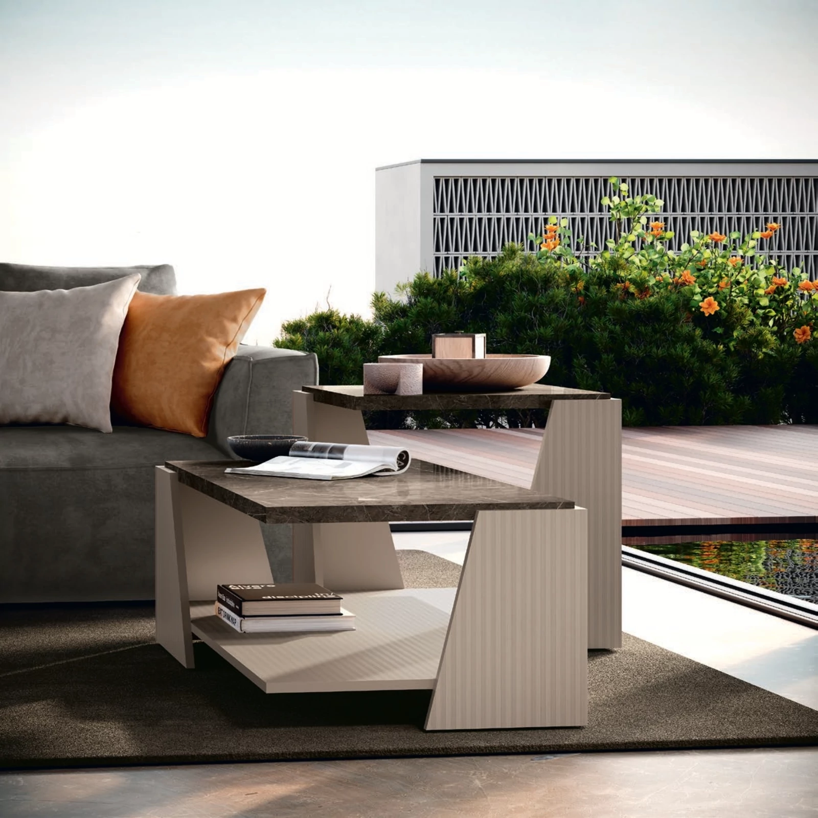 The Lusso coffee table, crafted in Italy, combines high-quality materials and modern design to enhance your living space. This stylish table adds movement and functionality, creating a dynamic focal point for your room