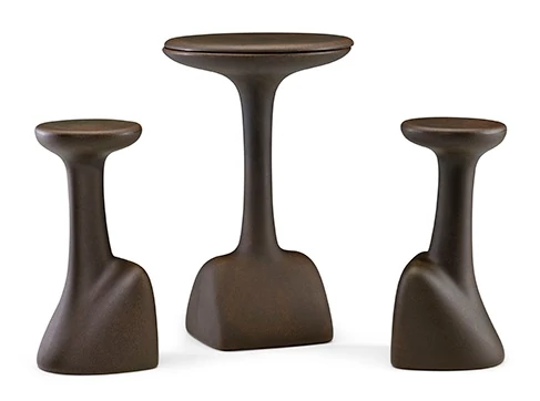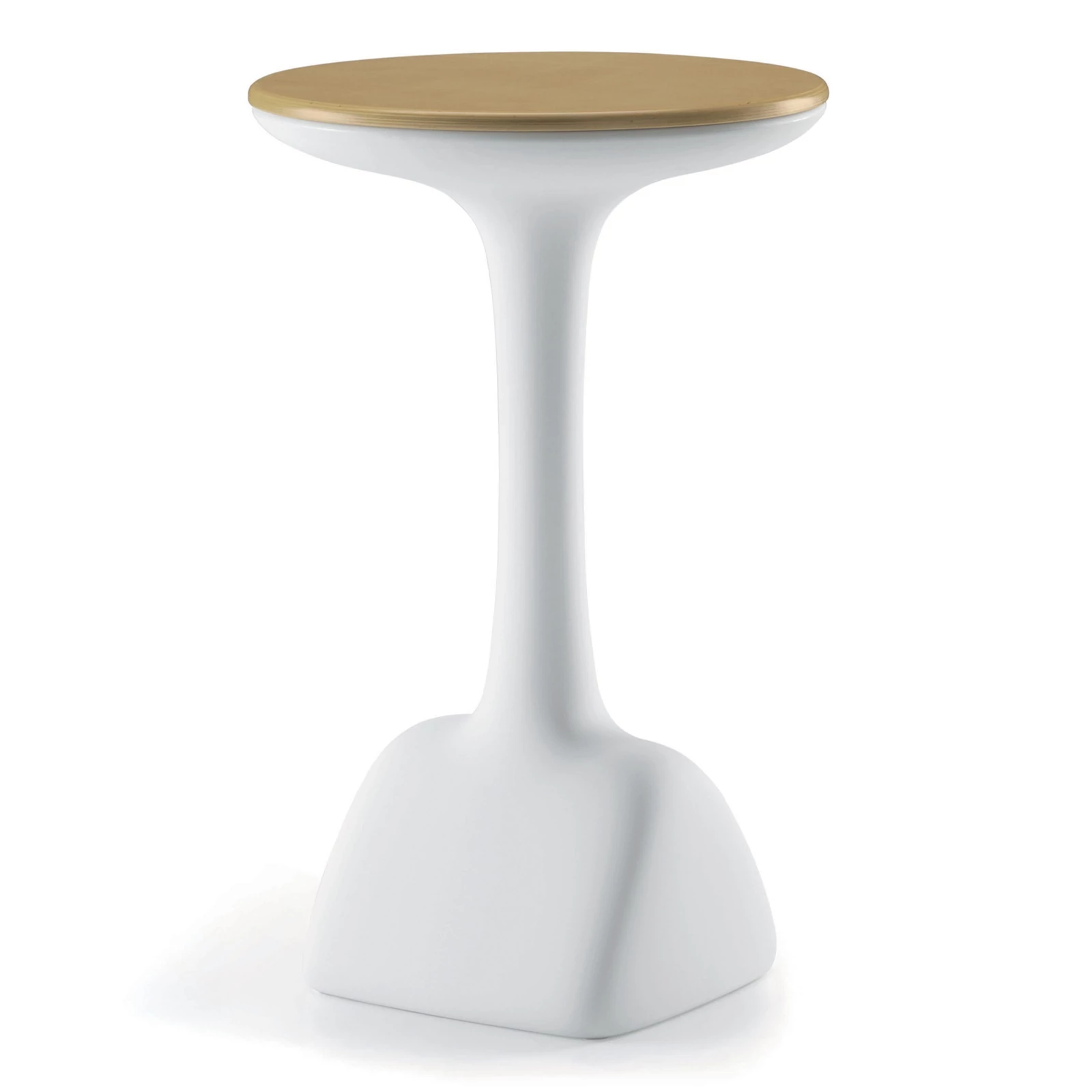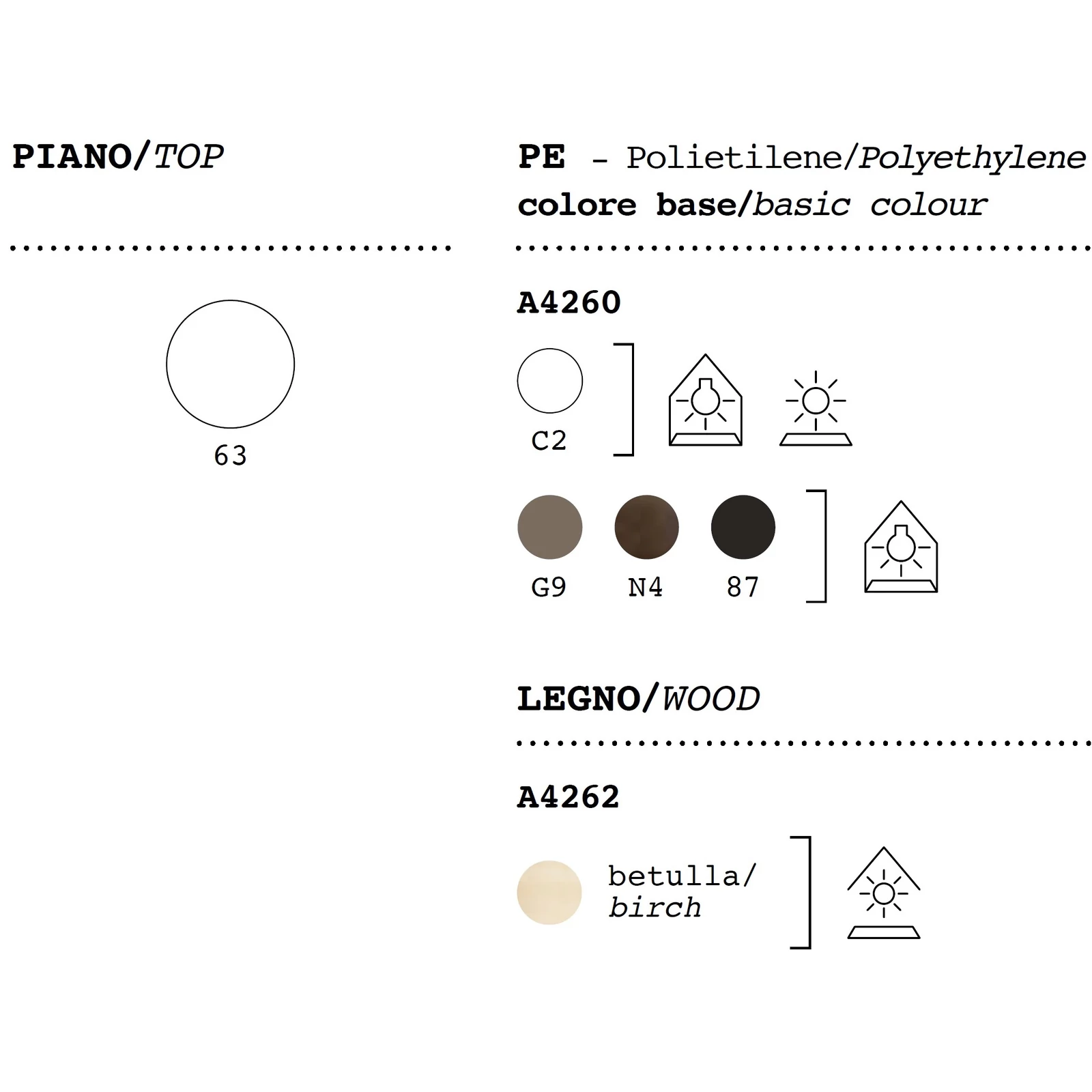 Table with central polyethylene base. Paired with top materials and different finishings, it takes on new styles and connotations.