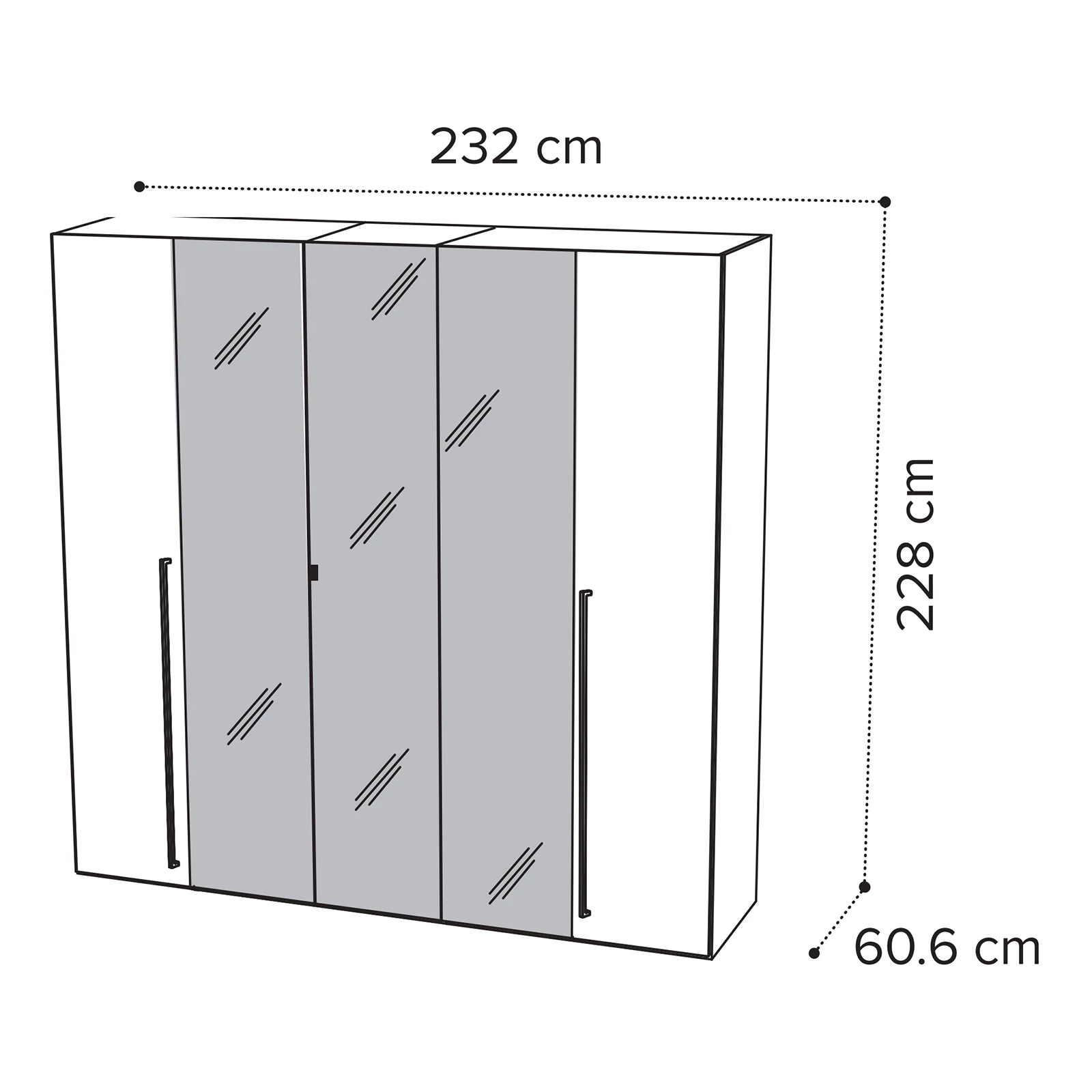 White Wardrobe, 6 Doors with 4 Mirrors – CA Kharma
