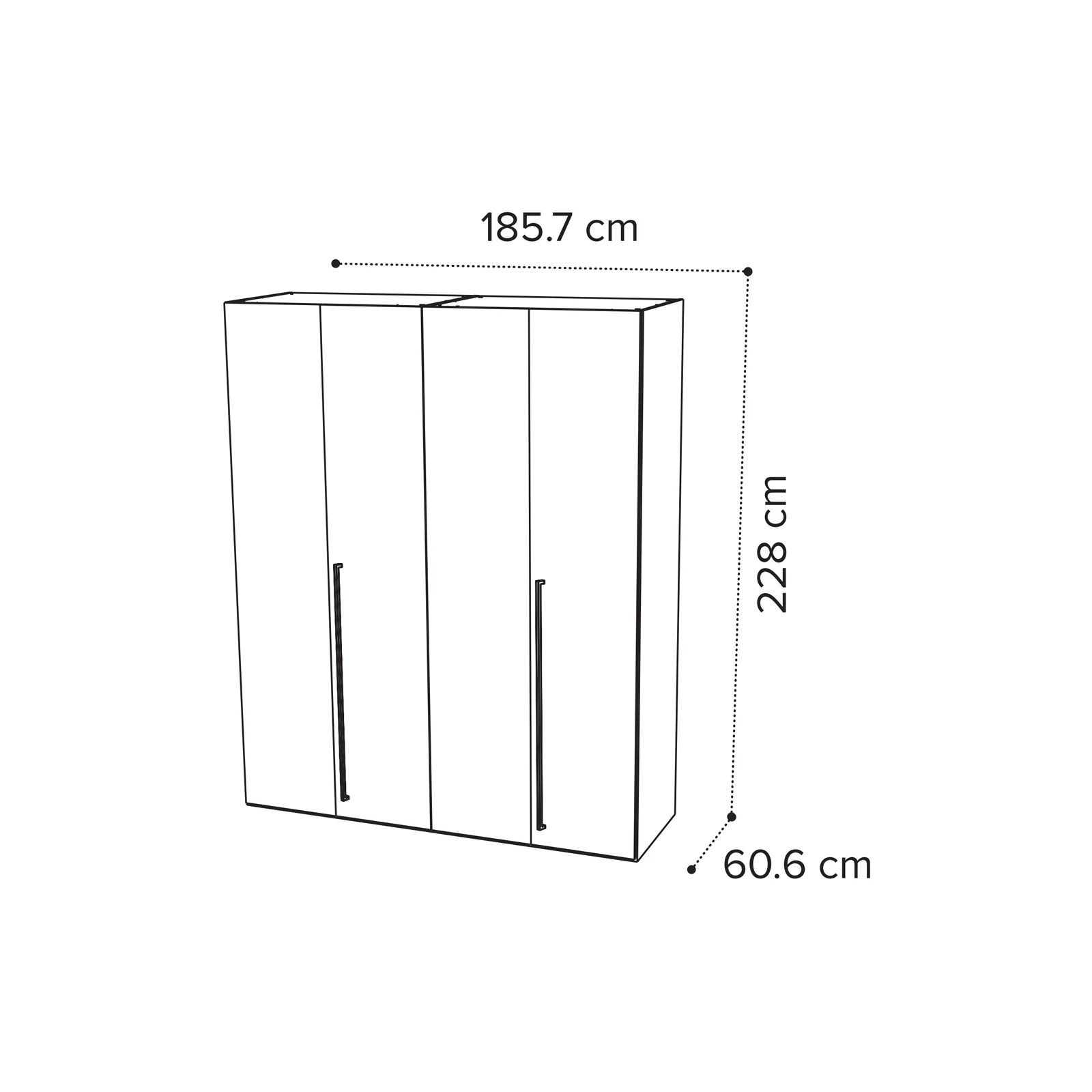 - 4-doors version: 185,7×60,6×228 cm