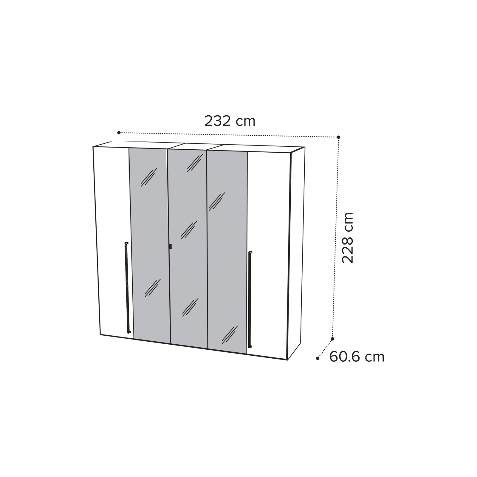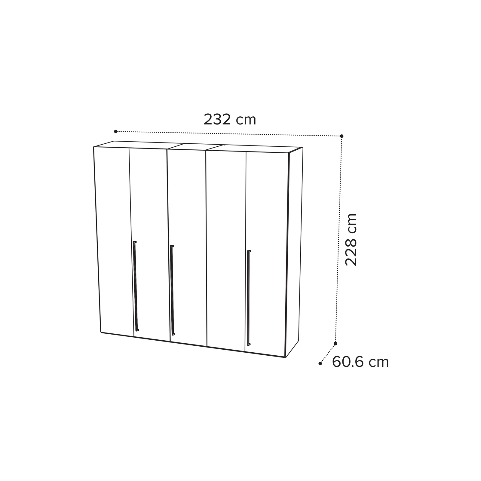 - 5-doors version: 232×60,6×228 cm