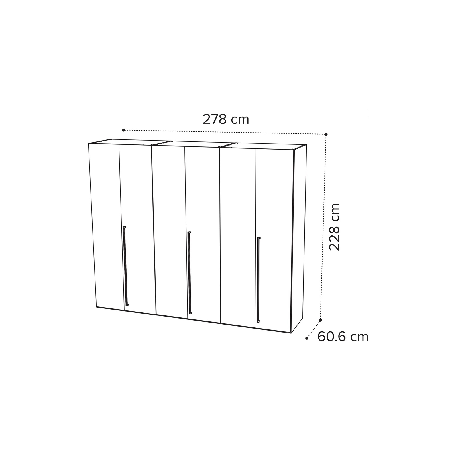 - 6-doors version: 278×60,6×228 cm