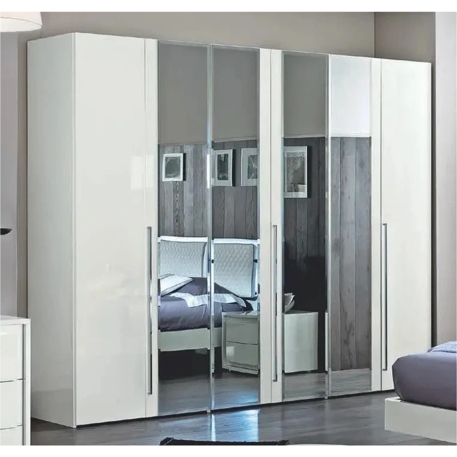 White Wardrobe, 6 Doors with 4 Mirrors – CA Kimera