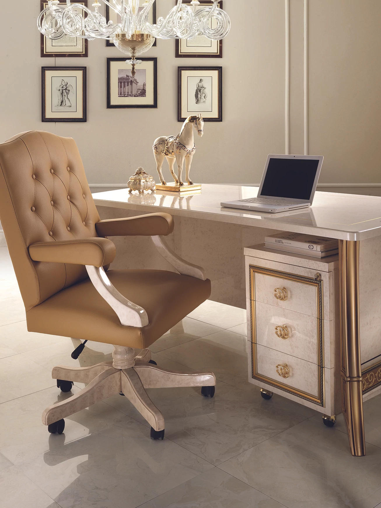 With its Melodia model, ArredoClassic presents an unreleased work composed from the notes of immortal Italian elegance. Italian craftsmen created a new, romantic style with beautiful gold columns, that embrace and emphasize the shapes with soft lines. The delicate and extremely elegant white-melange color reminds us of the prestige of polished marble. Learned and experienced creators have simultaneously created a product range of stunning beauty and at the same time extremely practical.