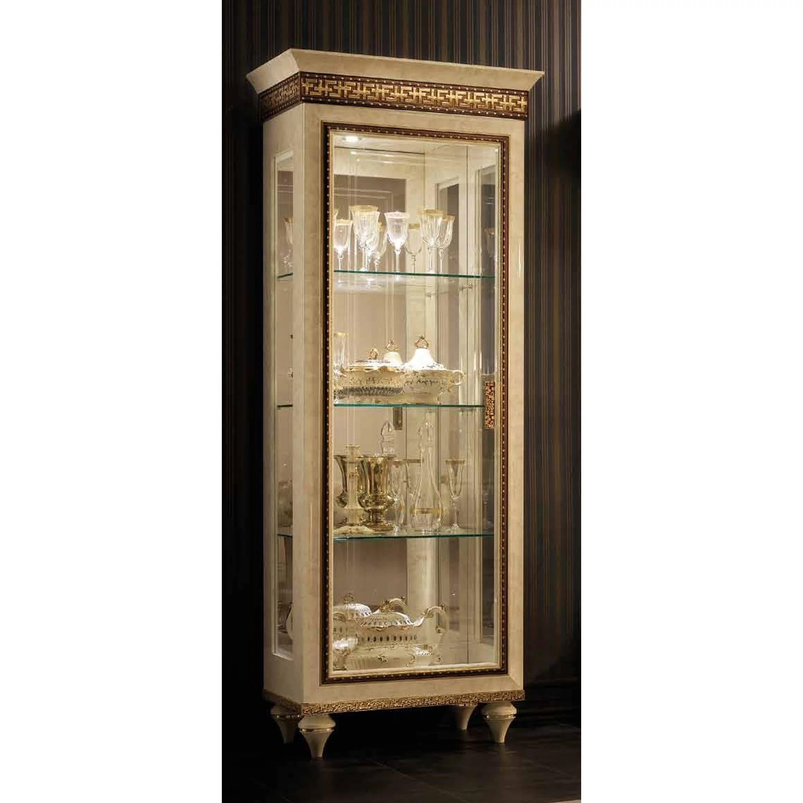 The extremely beautiful new model of the ArredoClassic luxury furniture factory is Fantasia, that perfectly represents the elegance and harmony of neoclassical style. Its sophisticated design that is perfectly elaborated in every single detail created the opportunity that the full luxury of the Roman Empire arrives also at your home. The collection which shows an idyllic balance, goes back to a receptive detail of the Greek and the Mediterranean arts, to create then a single beautiful collection. The gold-plated frames and elegant details make the marbled surfaces and long staight lines really exciting. Every component of the Fantasia collection is the result of an attentive philological research and its a perfect example of what ArredoClassic represents: the highest quality of 100% Made in Italy lifestyle.