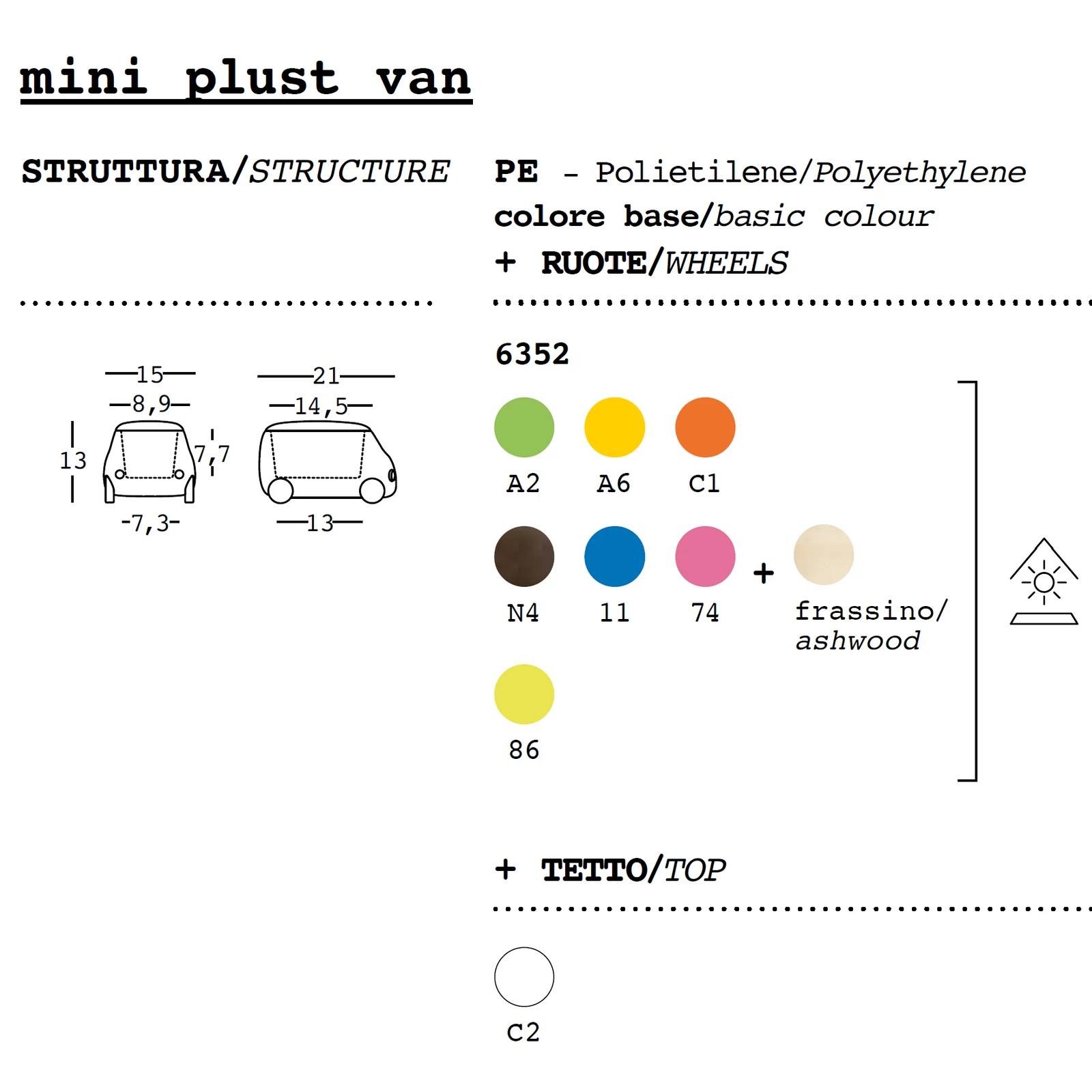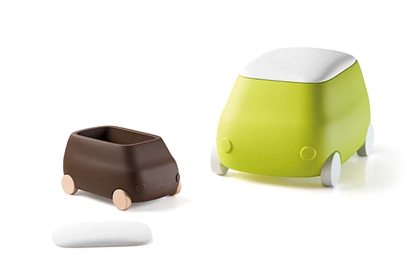 Toy carrier, dream container and symbol of adventure. Designed by Michele Menescardi, the PlusT Van will take toddlers and toys on imaginary journeys while adults will reminisce of adventures on the road. This durable container, with no sharp edges, is available in different colours and in a Mini version, to use as a container unit.