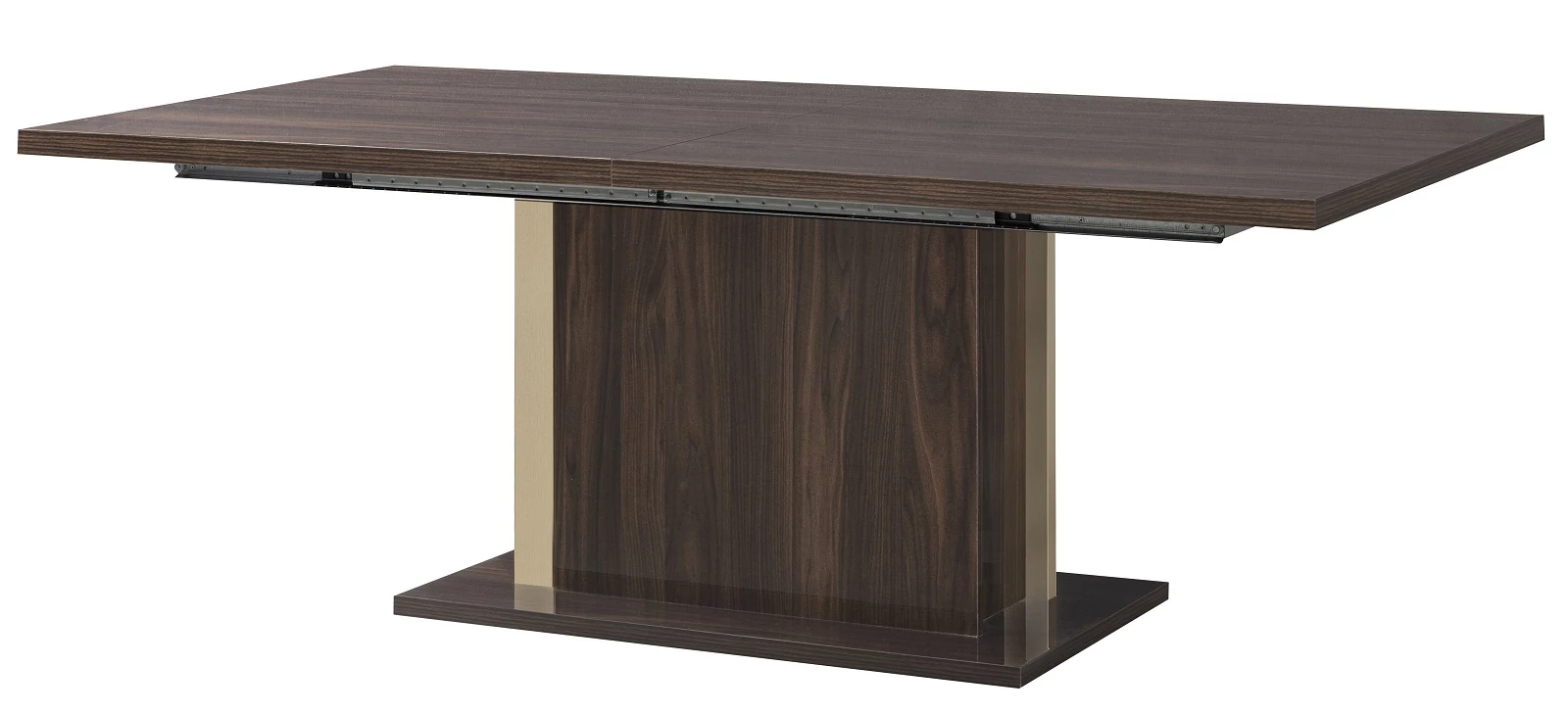 Table base structure: 18mm thick wood particles panels veneered with semi-gloss melamine finish (Camelgroup exclusive) with MDF (Medium Density Fiberboard) chromed inserts. Solid fir wood frame with low friction ball-bearing hot dip galvanized steel sliding mechanism.